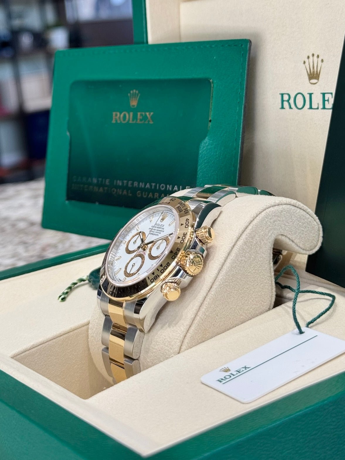 Bezel: Tachymetric engraved 18ct yellow gold bezel. Inner engraved Rolex bezel ring