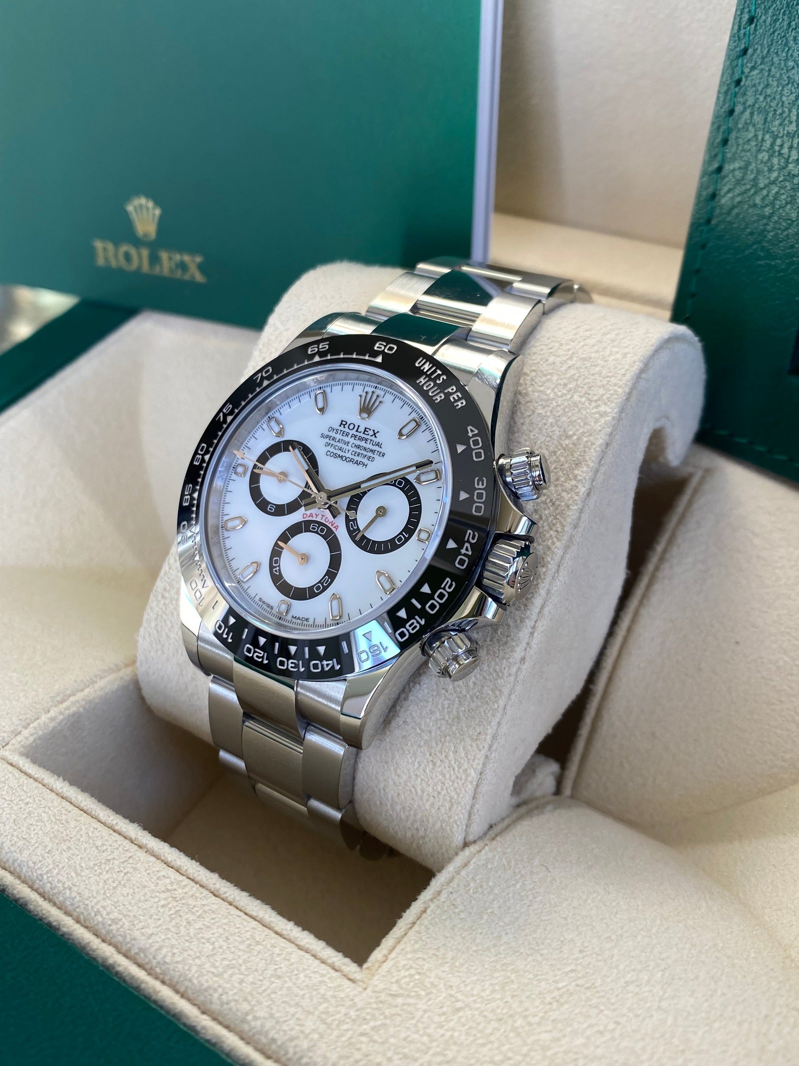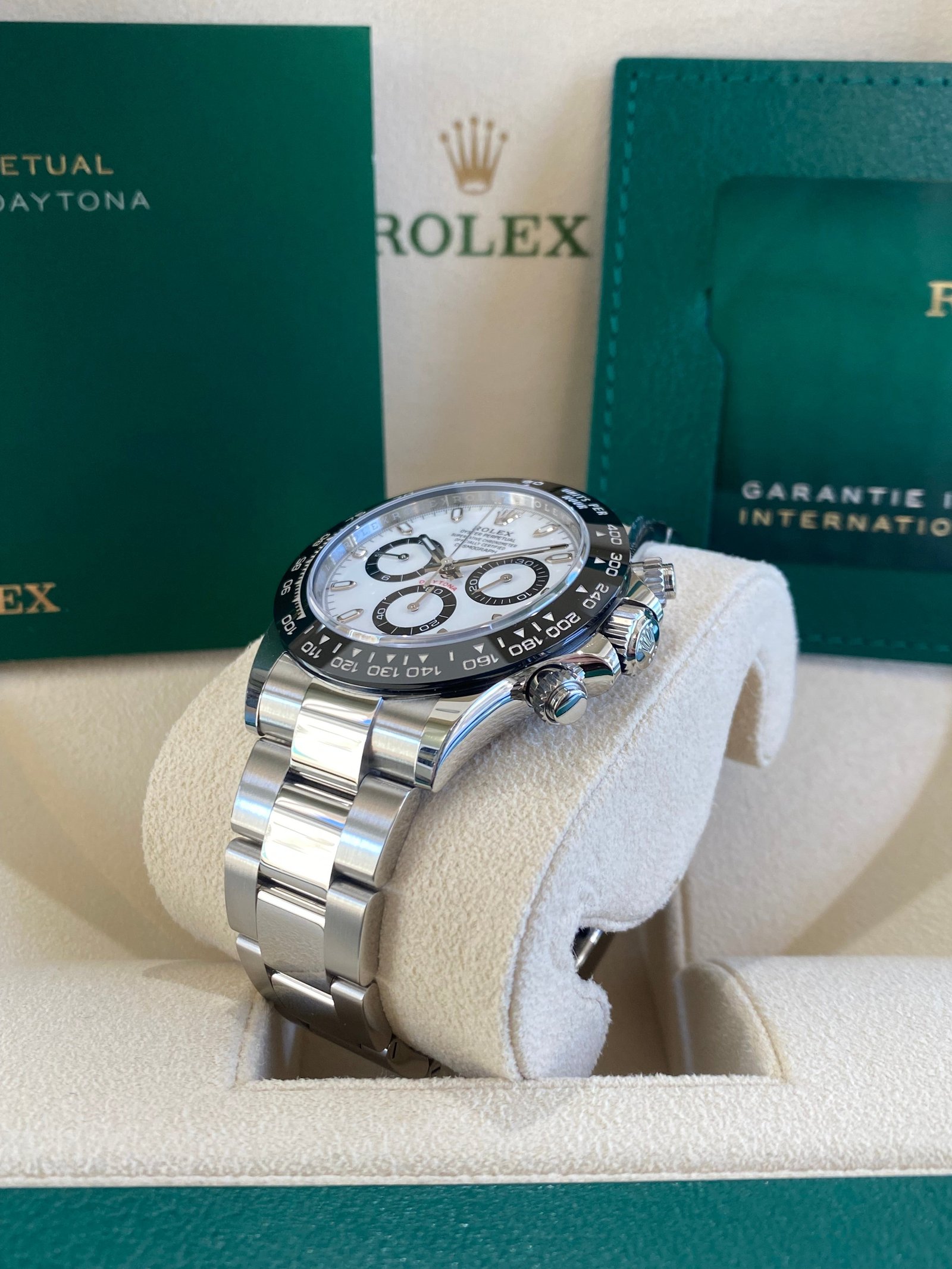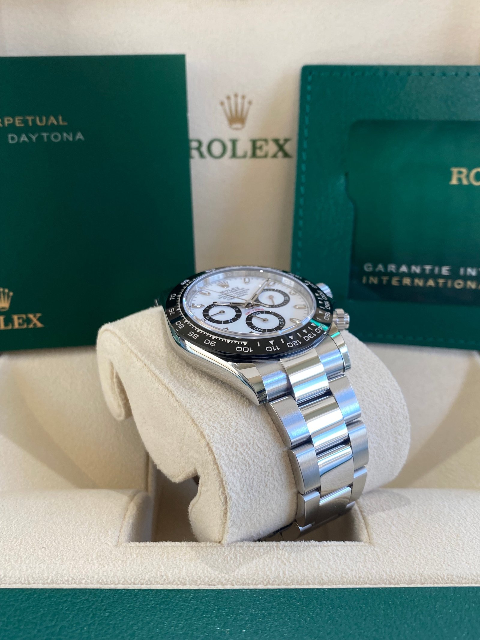 Bezel: Tachymetric engraved black ceramic bezel. Inner engraved Rolex bezel ring
