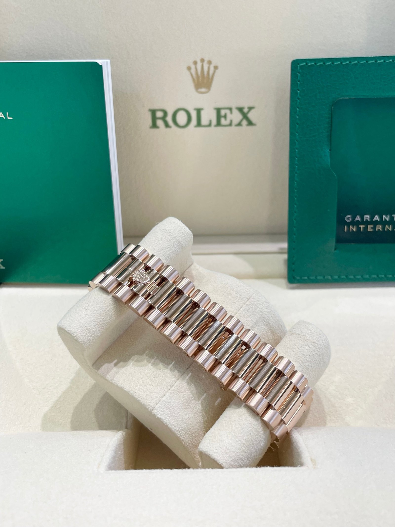 Bracelet: 18ct Everose gold President bracelet with hidden Crownclasp