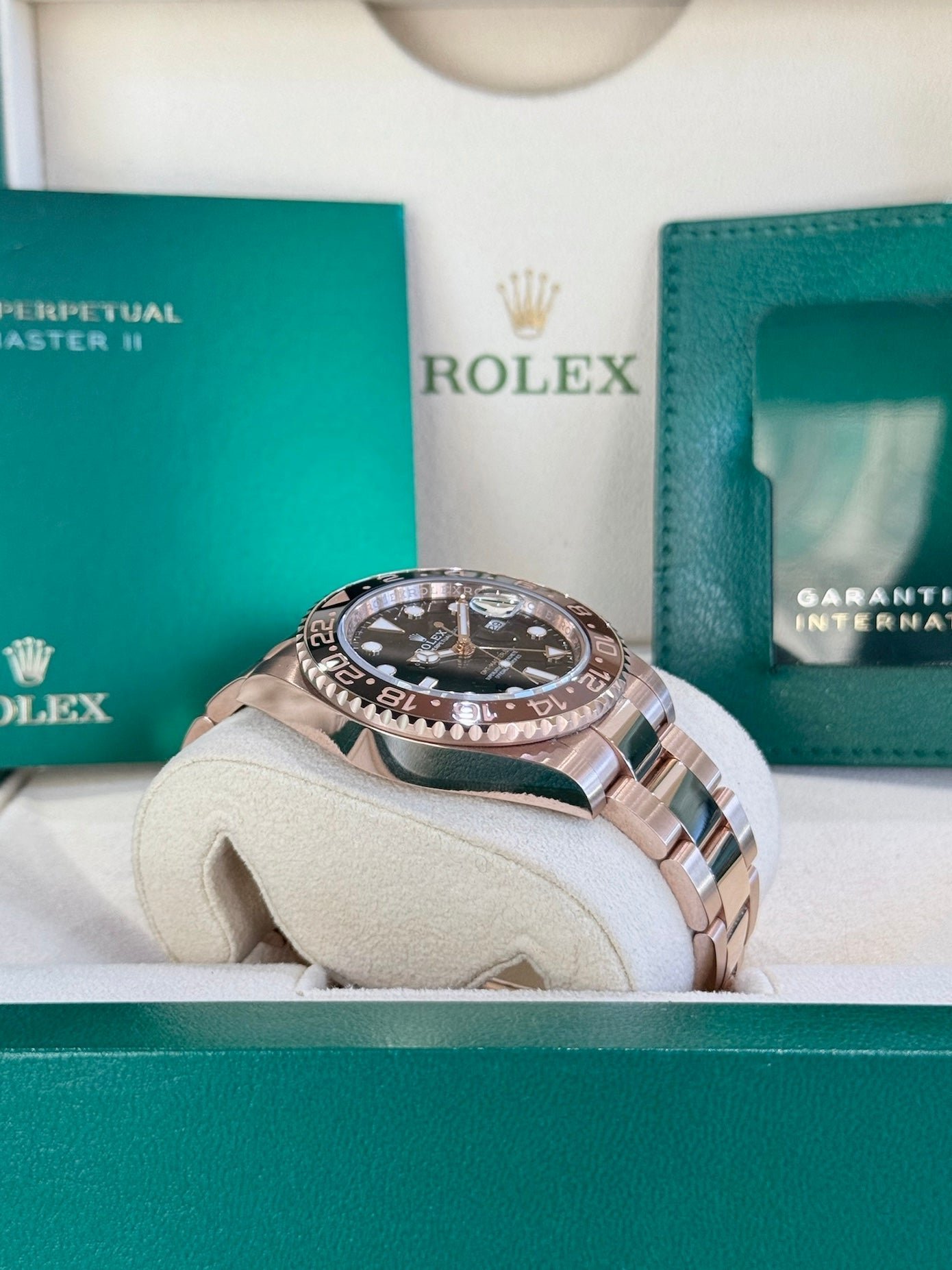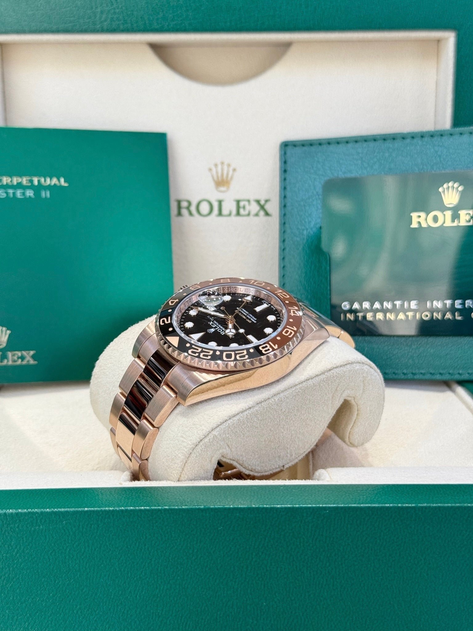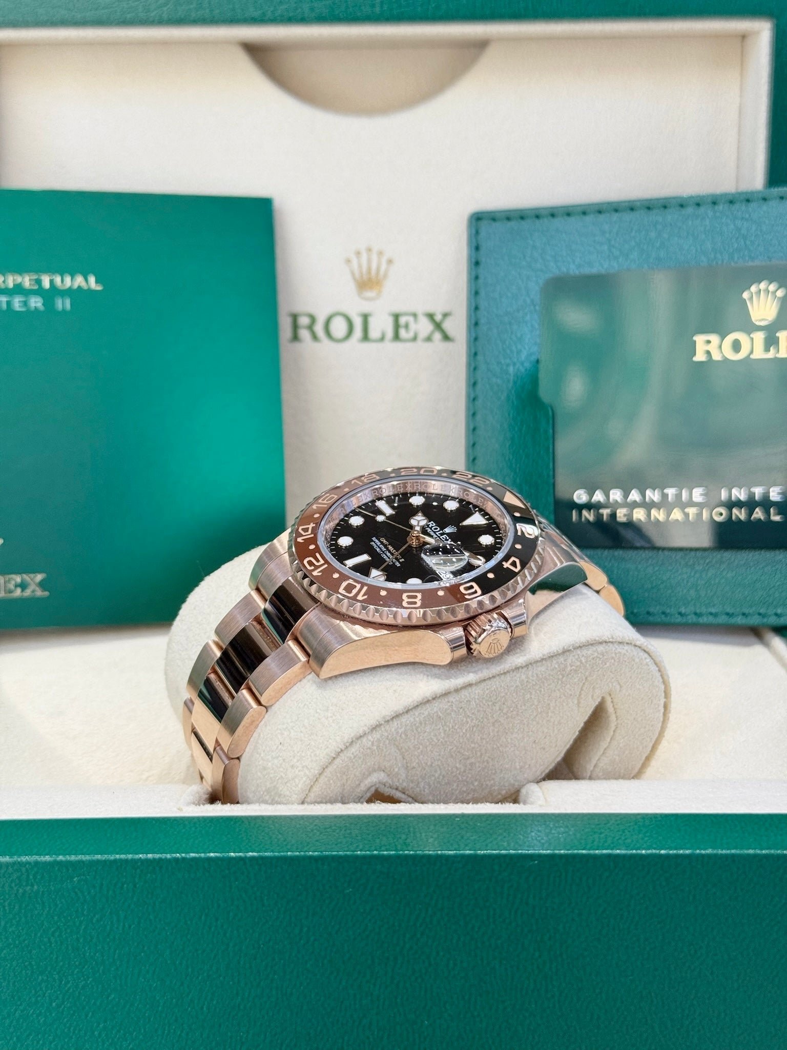 Case: 18ct Everose gold 40mm in diameter. Rolex logo on crown