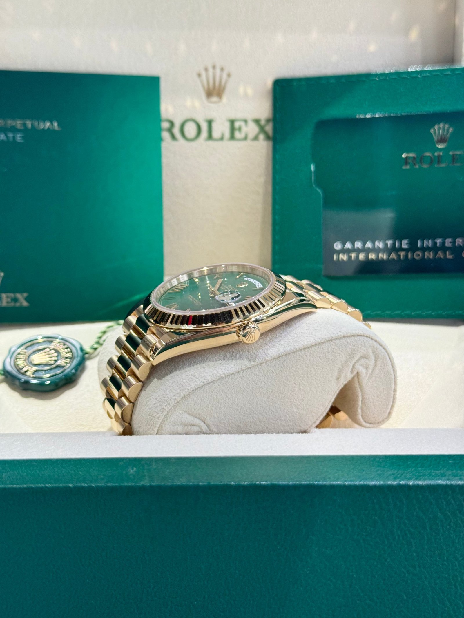 Case: 18ct yellow gold 40mm in diameter. Rolex logo on crown