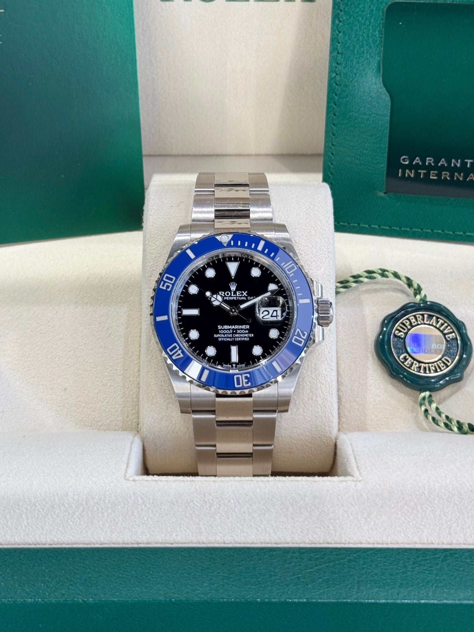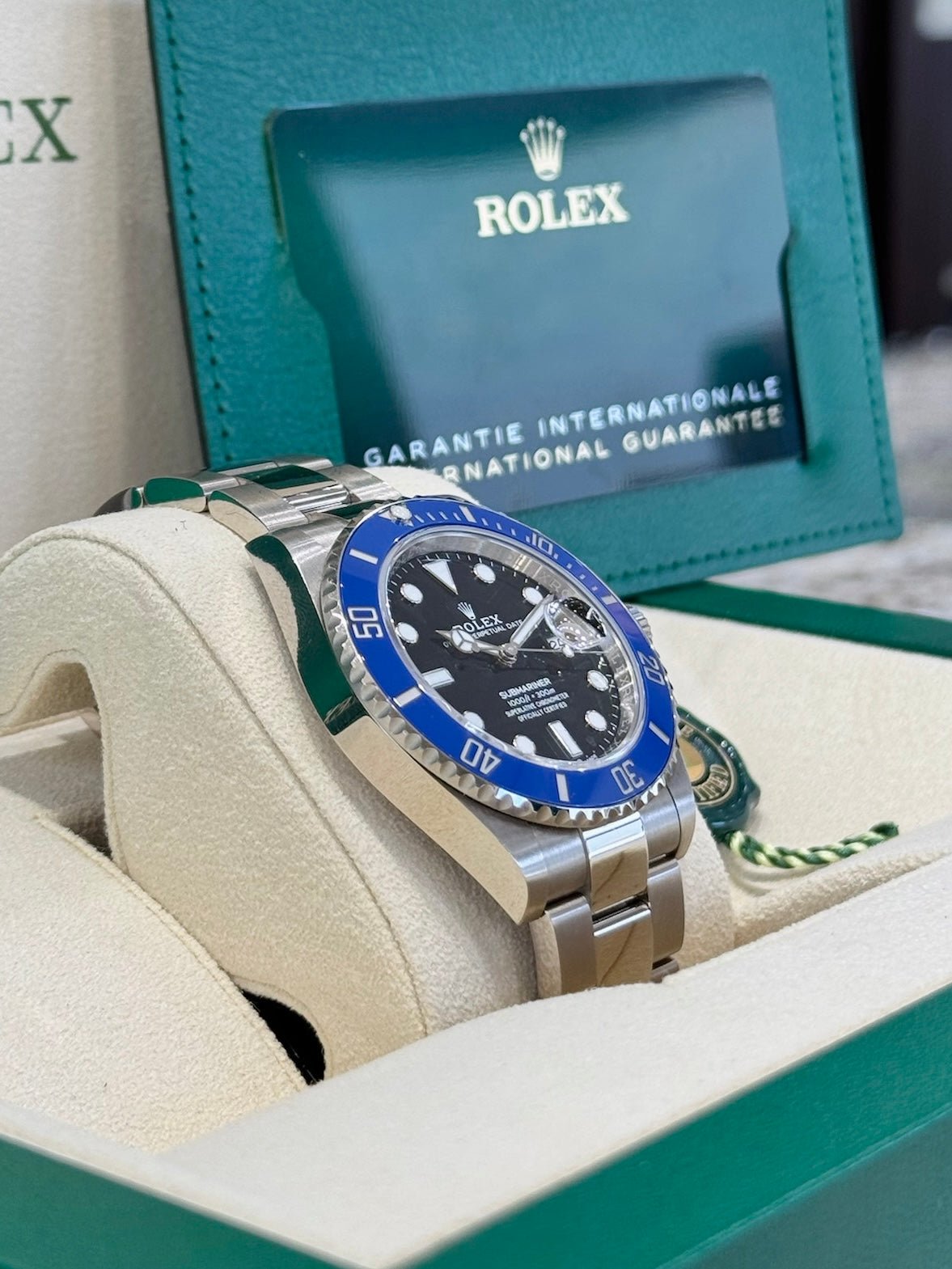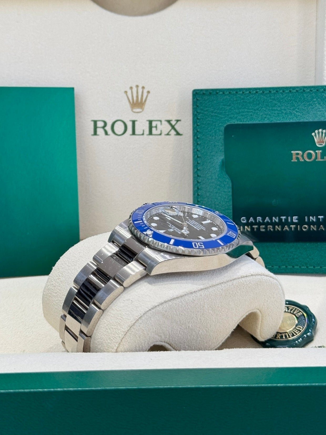 Bezel: Unidirectional blue ceramic bezel with 60 minute graduation. Inner engraved Rolex bezel ring