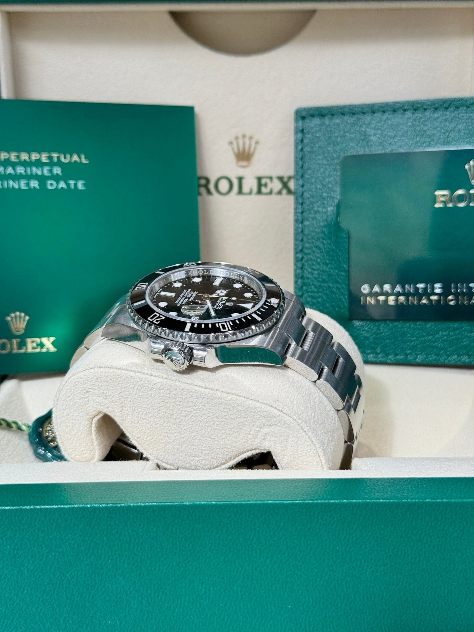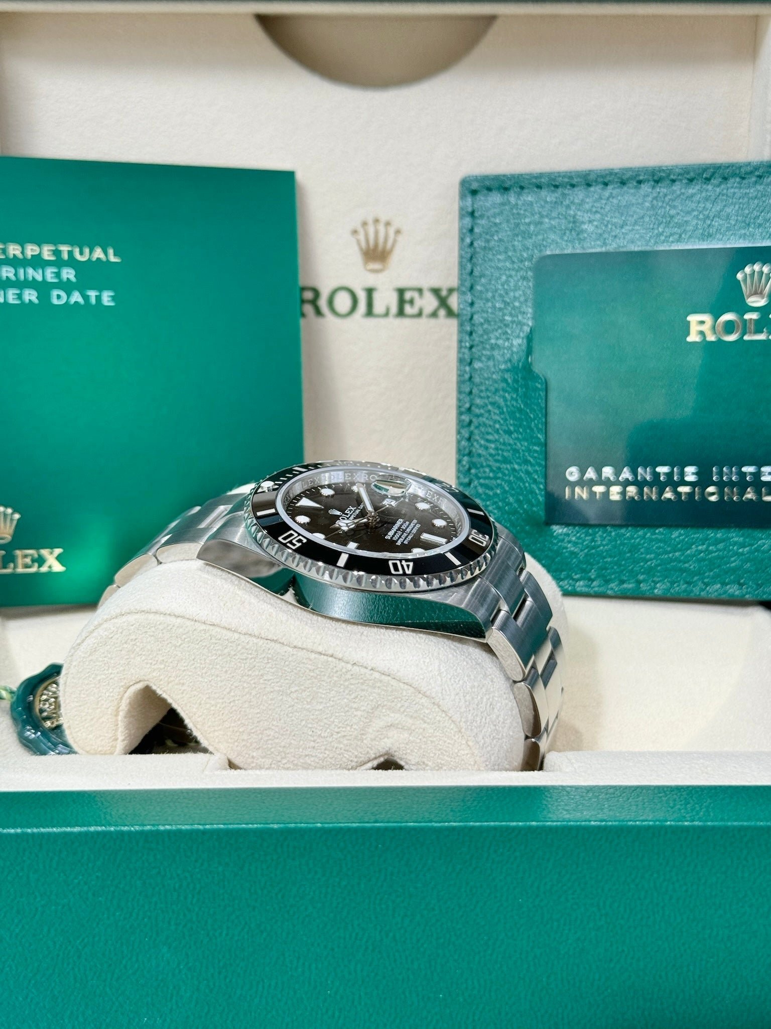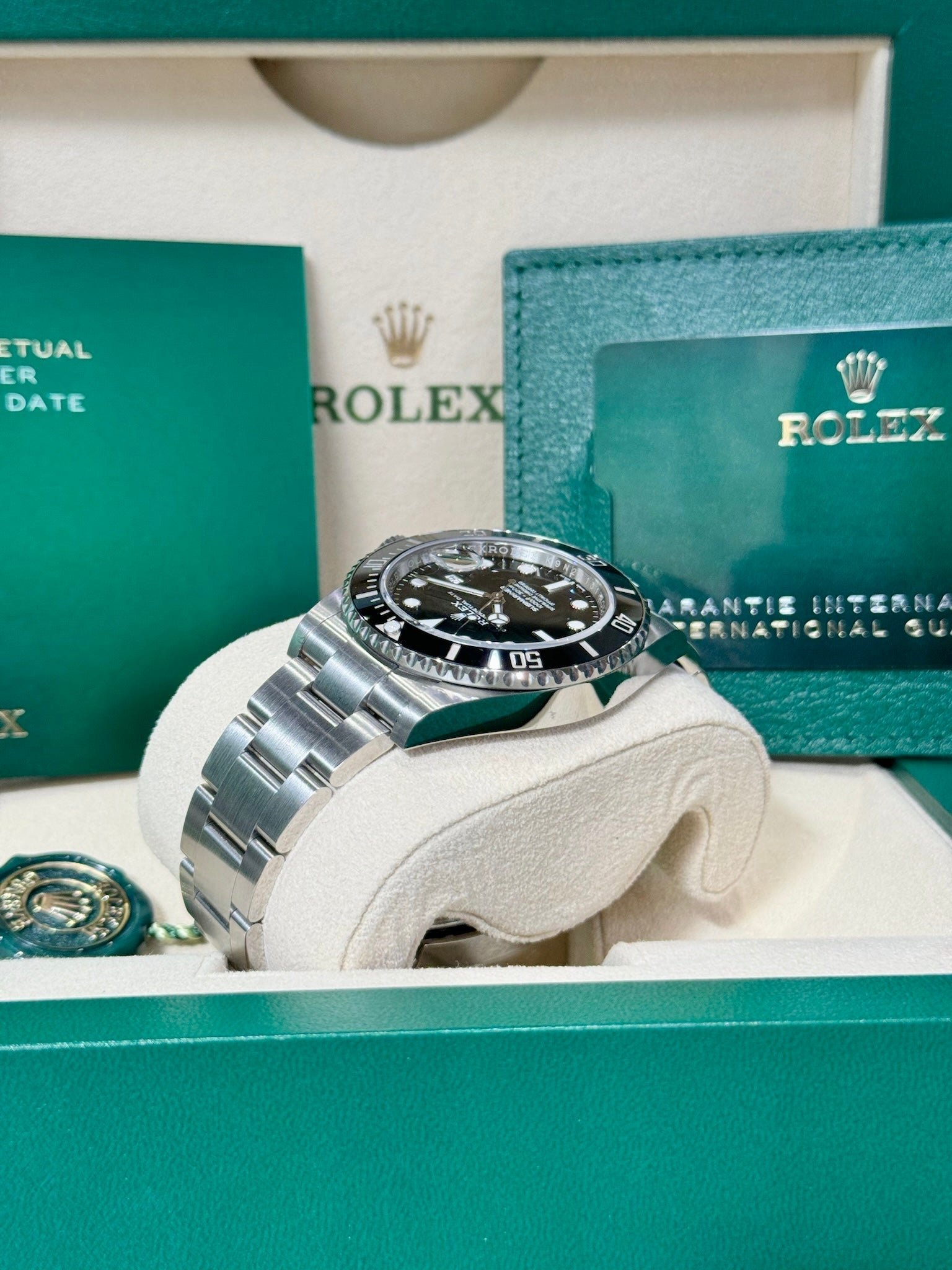 Box & Papers: Original Rolex box, papers, and hangtags