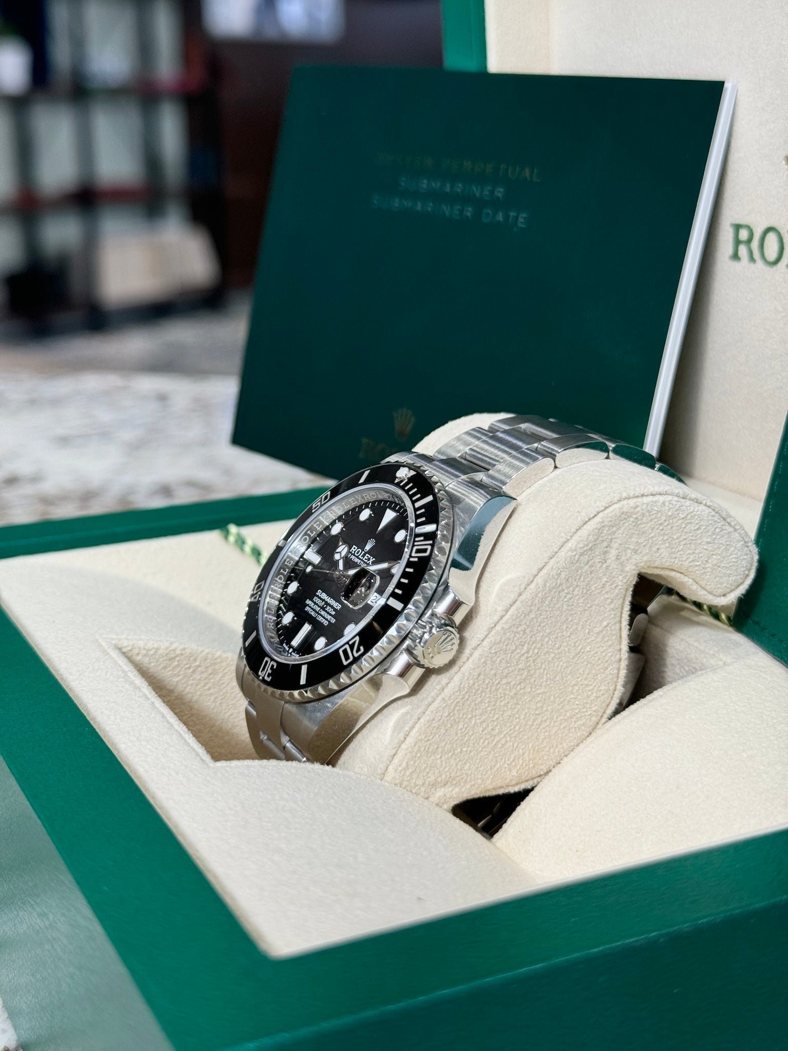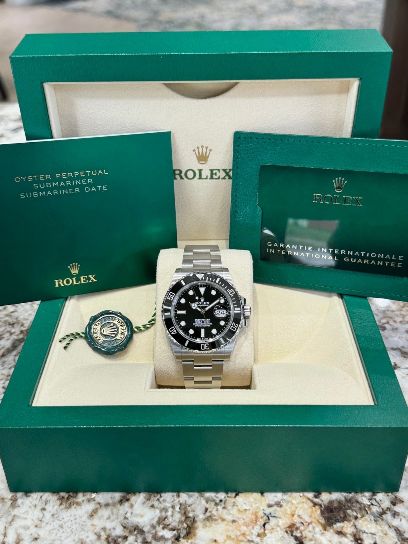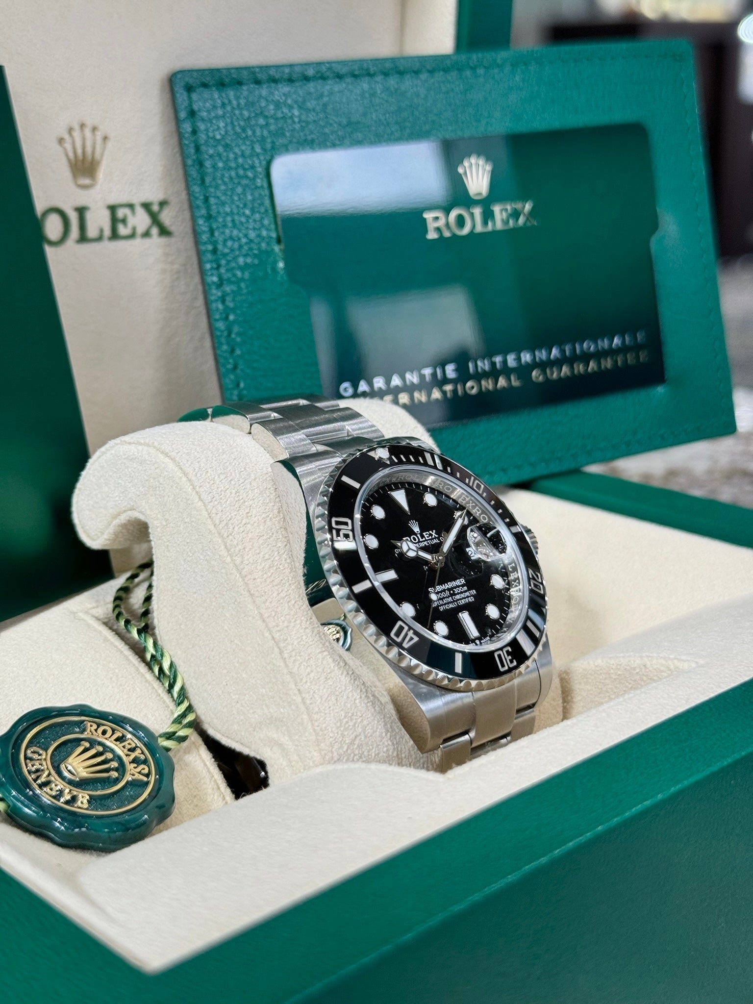 Box & Papers: Original Rolex box, papers, and hangtags