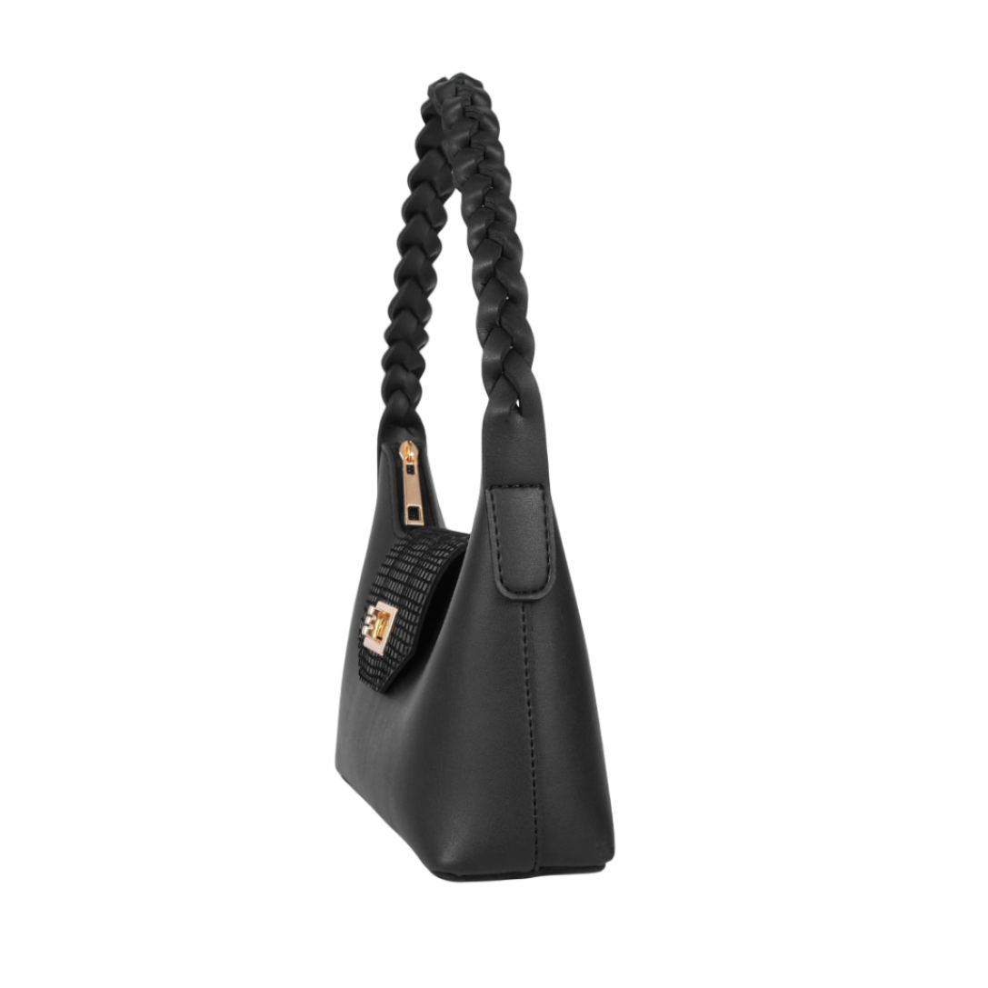 Be the first to review “Black Braided Handle Shoulder Handbag Faux Leather with Twist Lock”