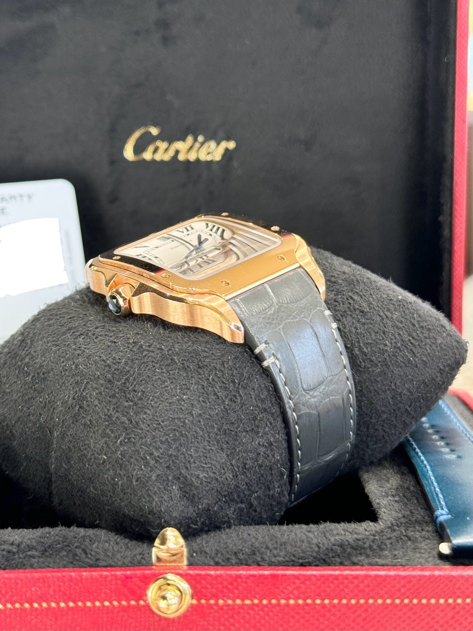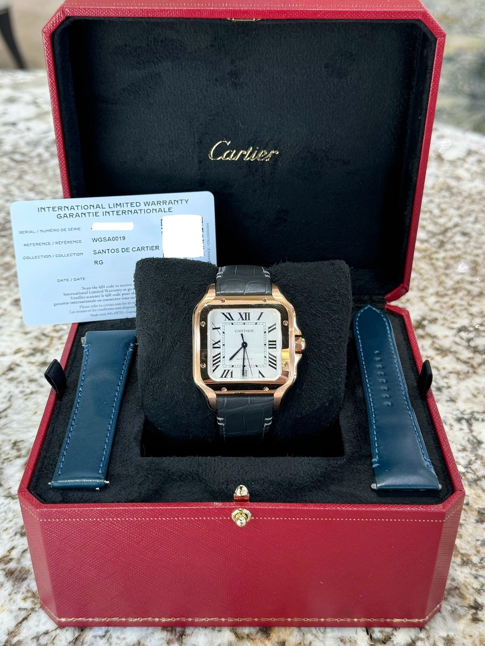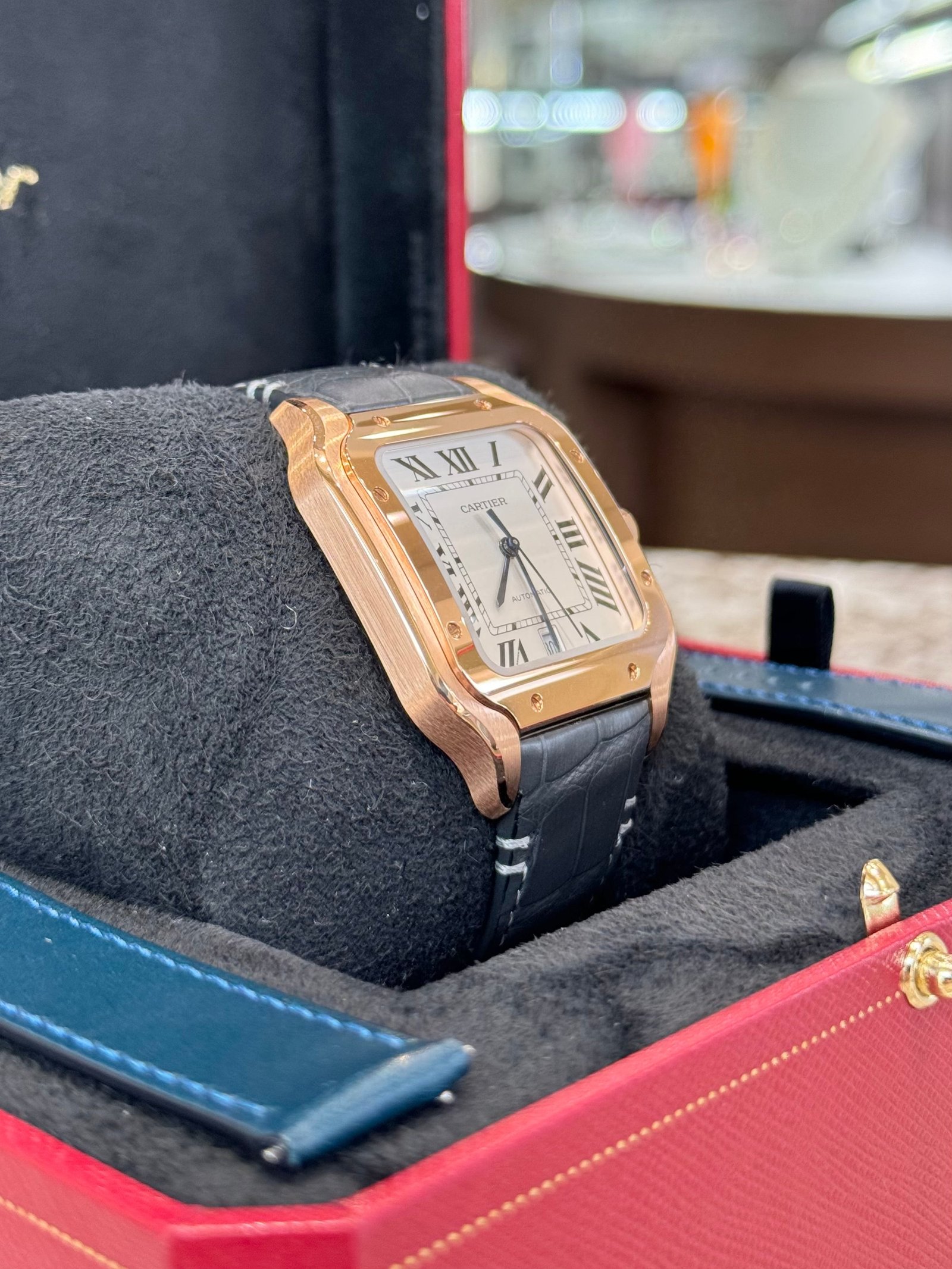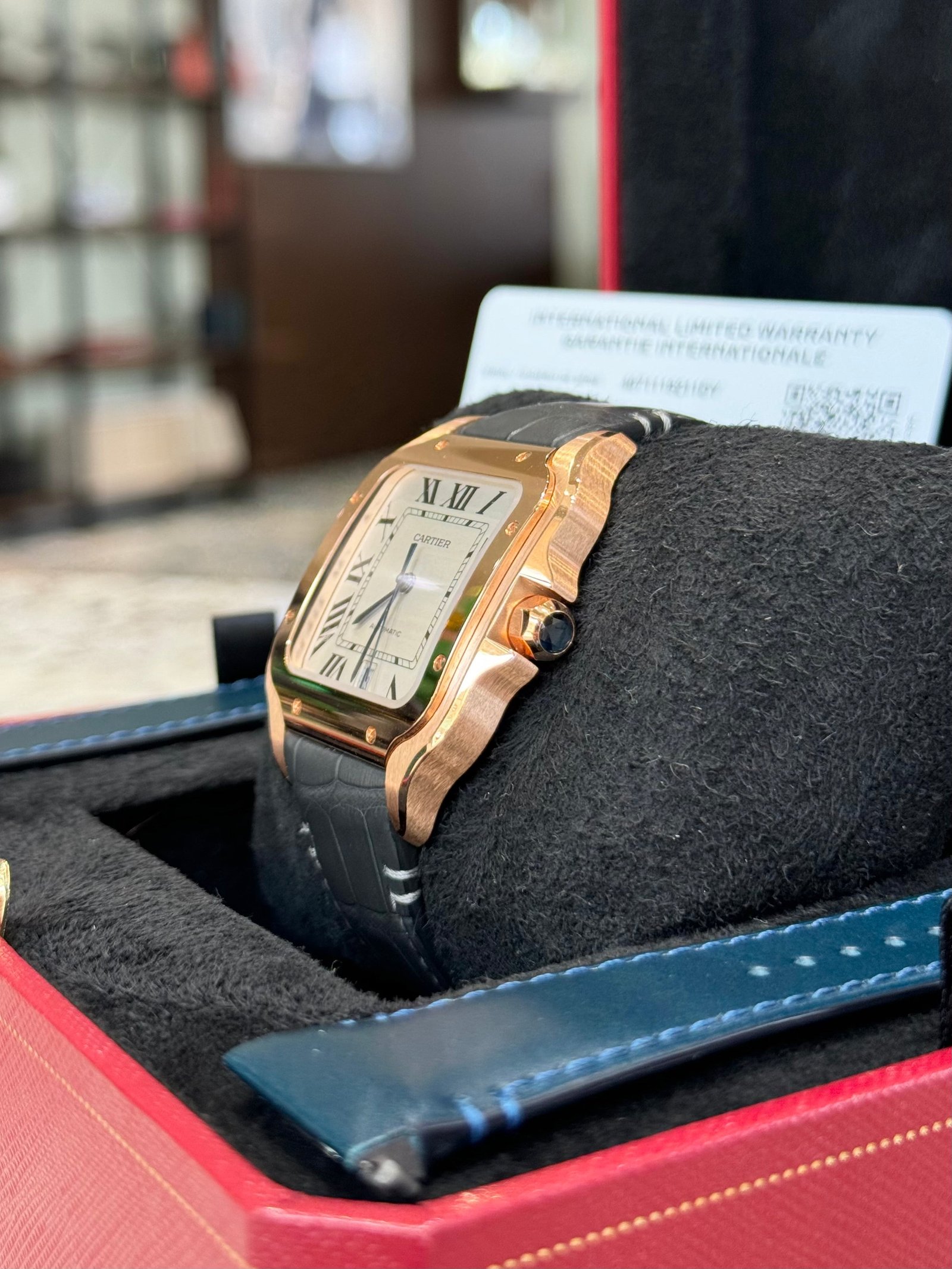 Case: Rose gold case 39.8 mm width. 7-sided crown set with a faceted sapphire