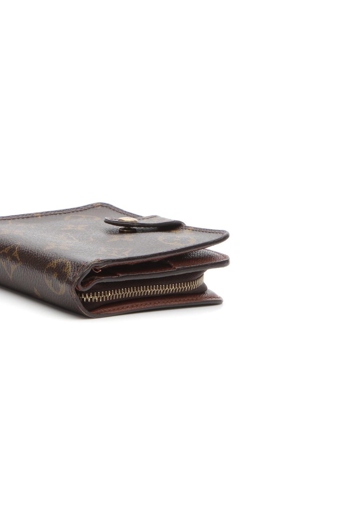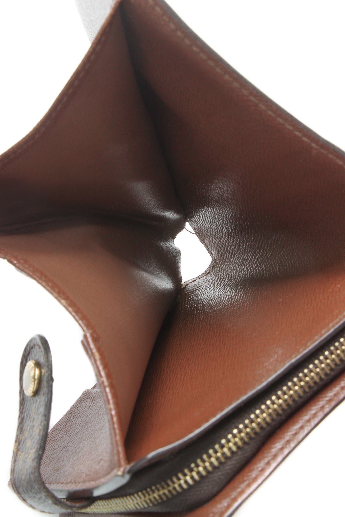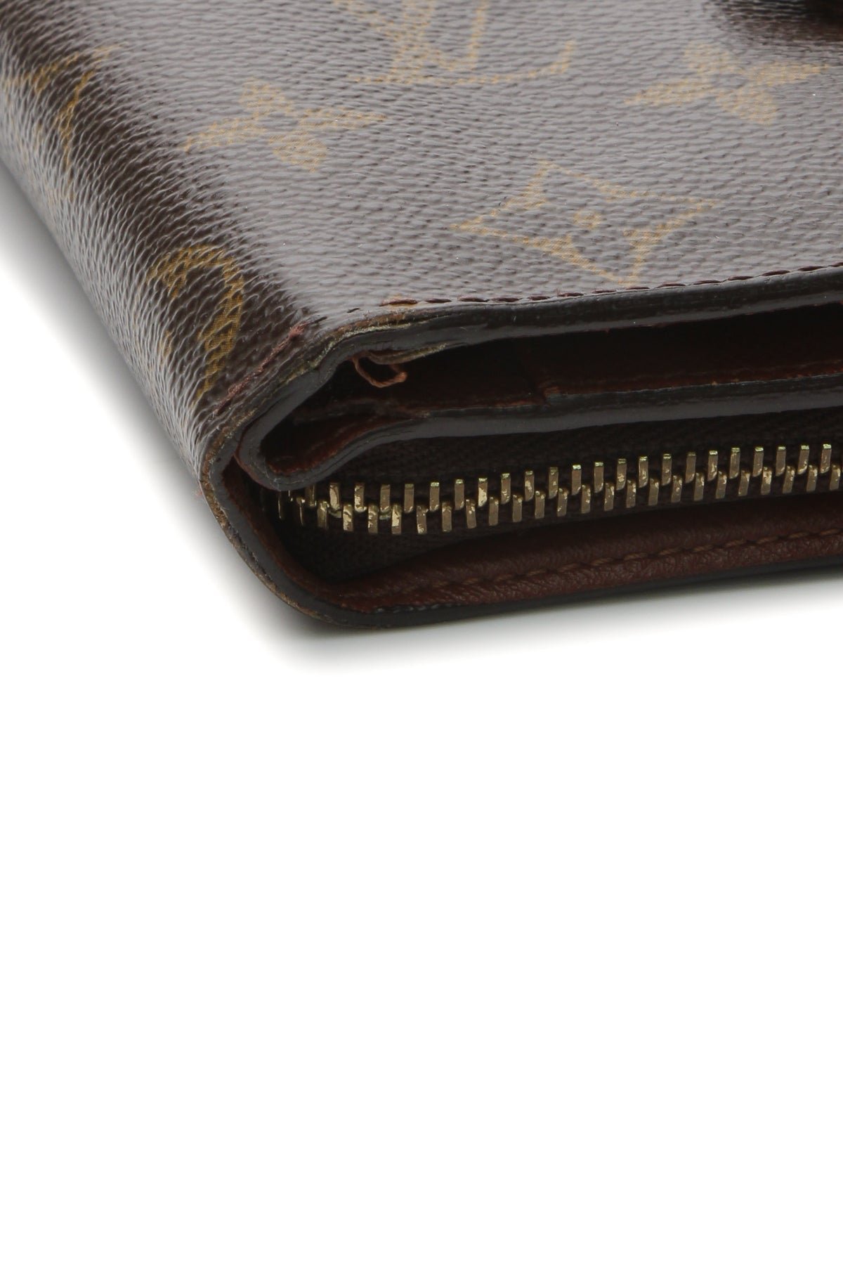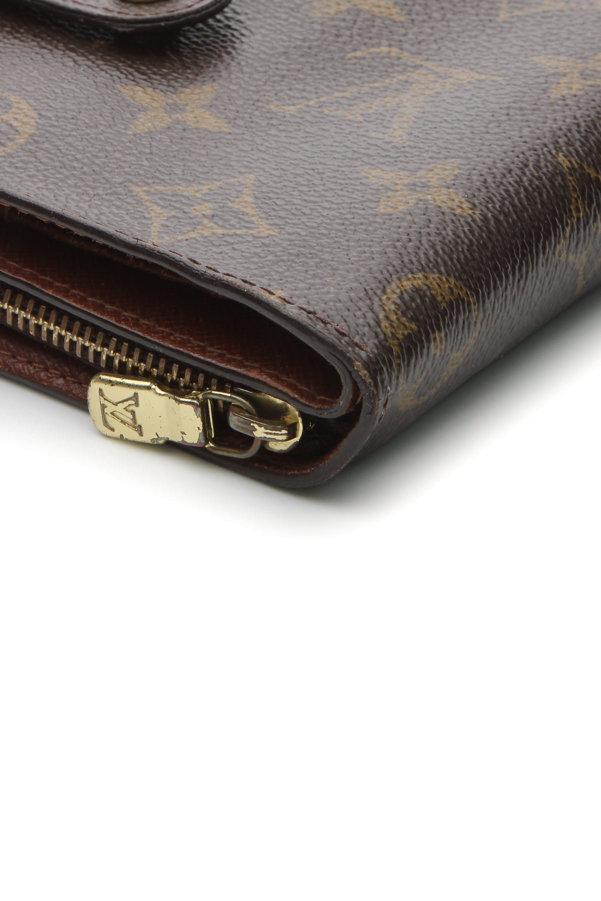 This wallet is in good condition with minor wear/discoloration on the canvas, corners, interior lining, and glazed edges, scratches/discoloration on the hardware, and minor bending on the corners.