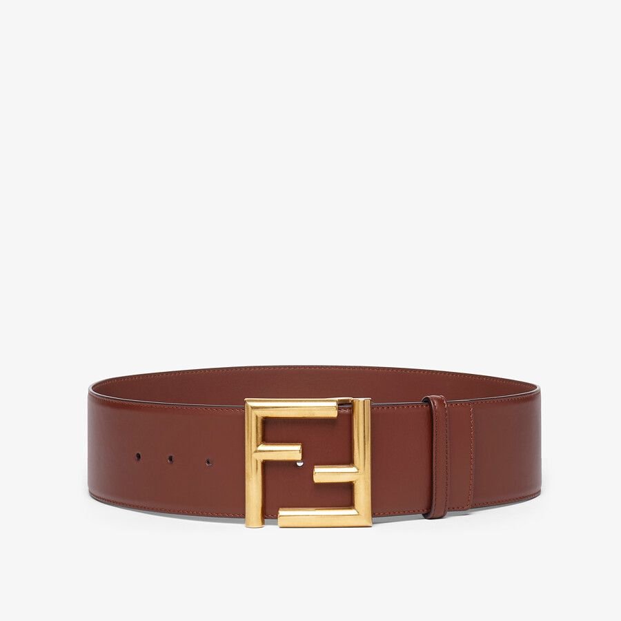 Wide belt with loop and FF stud buckle. Made of black leather. Gold-finish metal ware.