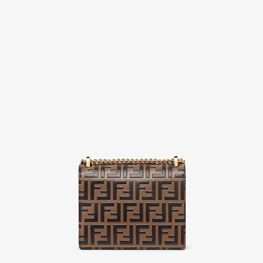 Mini-bag with flap made of leather with embossed FF motif hand-painted in brown and black. Decorated with iconic FF press fastening.