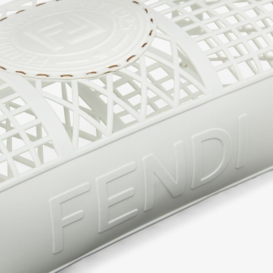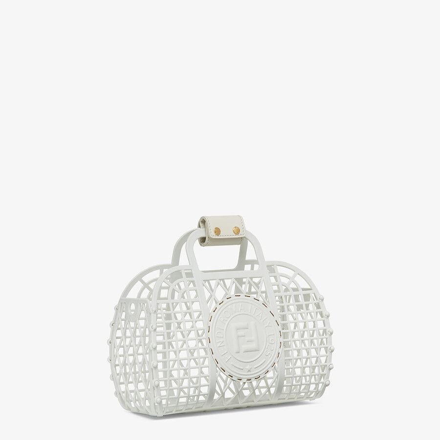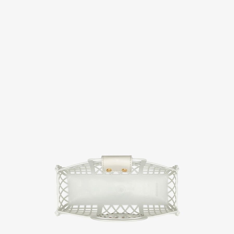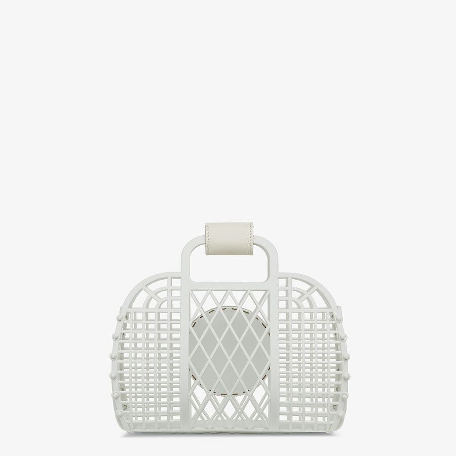 Small handbag made entirely from white recycled plastic, decorated with a tone on tone embossed leather Fendi Stamp.