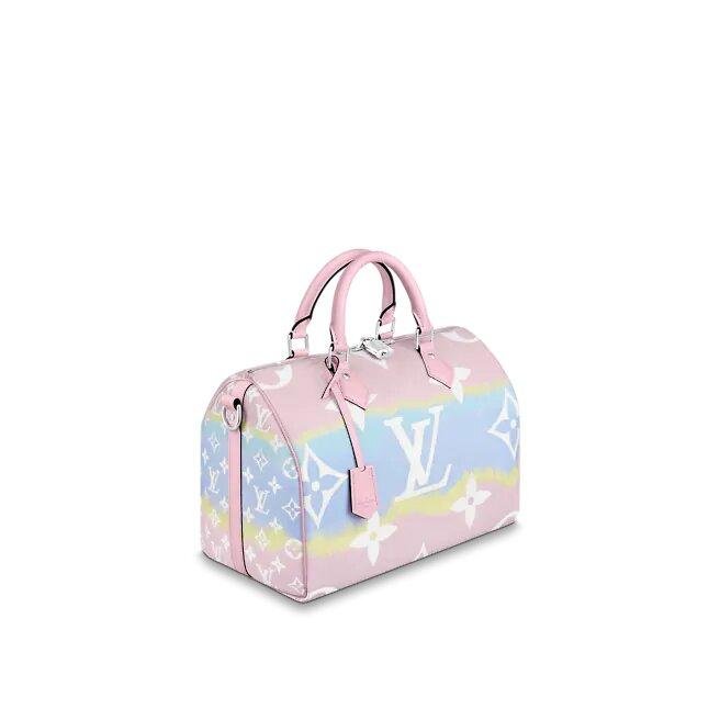 Tie-Dye Monogram canvas brings a beachy sense to the Speedy Bandoulière 30, a conventional L.V town bag relooked for the L.V Escale Collection. The rolled-leather handles and distinct form make this bag immediately recognizable even as the detachable strap gives the option of comfy shoulder deliver. It’s signed with the long-lasting engraved padlock.
