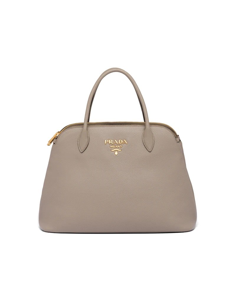 This leather handbag with metal logo has a practical shoulder strap and is characterized by functional details such as the two external zipper pockets.