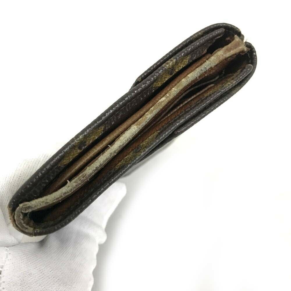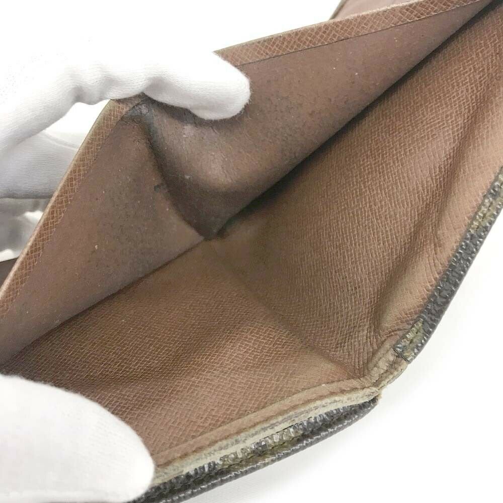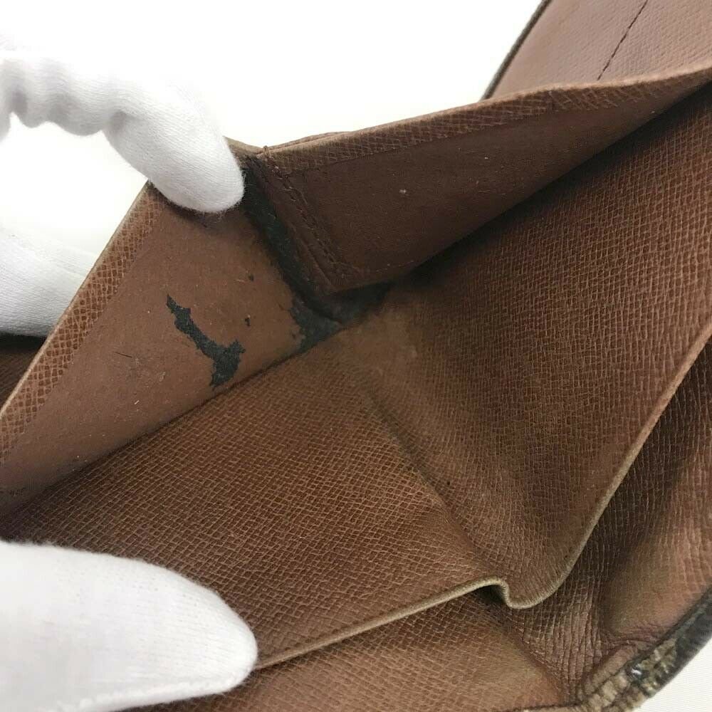 Interior: Some rubs and stains on the lining. Noticeable peeling and stickiness in the note compartments. Some stains and darkening in the coin compartment. No bad odor.