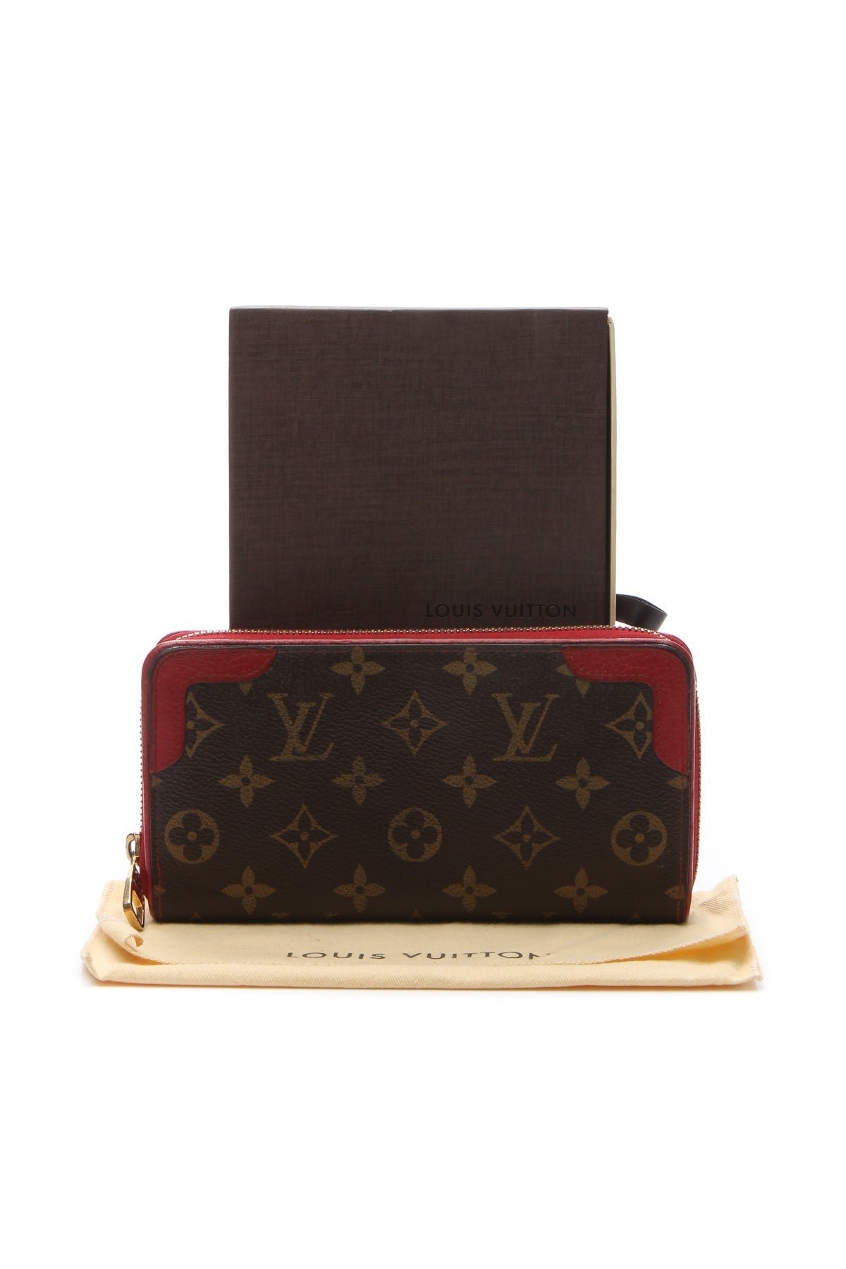 Break away from the ordinary with this authentic Louis Vuitton Retiro wallet. An alluring everyday wallet, this classic piece features an instantly recognizable monogram canvas exterior, cherry red leather trim, and gold-tone hardware. With a spacious interior and multiple pockets to easily store essentials, this wallet is the ideal choice for any modern-day sophisticate.