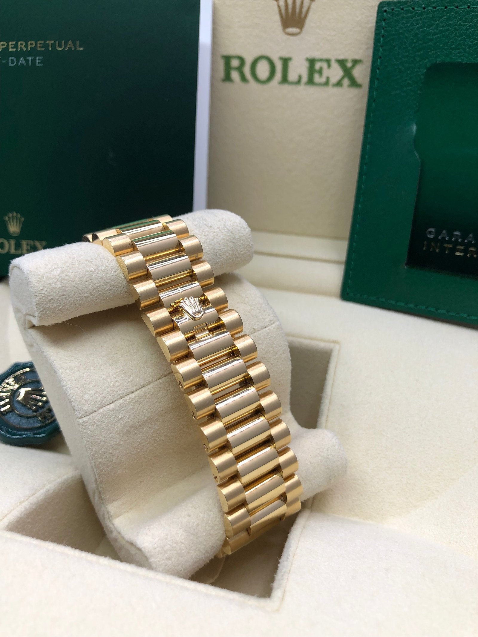 Case: 18ct yellow gold. 40mm in diameter. Rolex logo on crown
