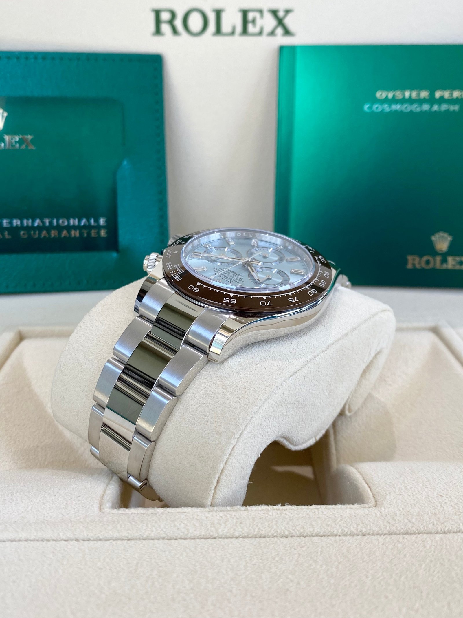 Bezel: Tachymetric engraved chestnut brown ceramic bezel. Inner engraved Rolex bezel ring