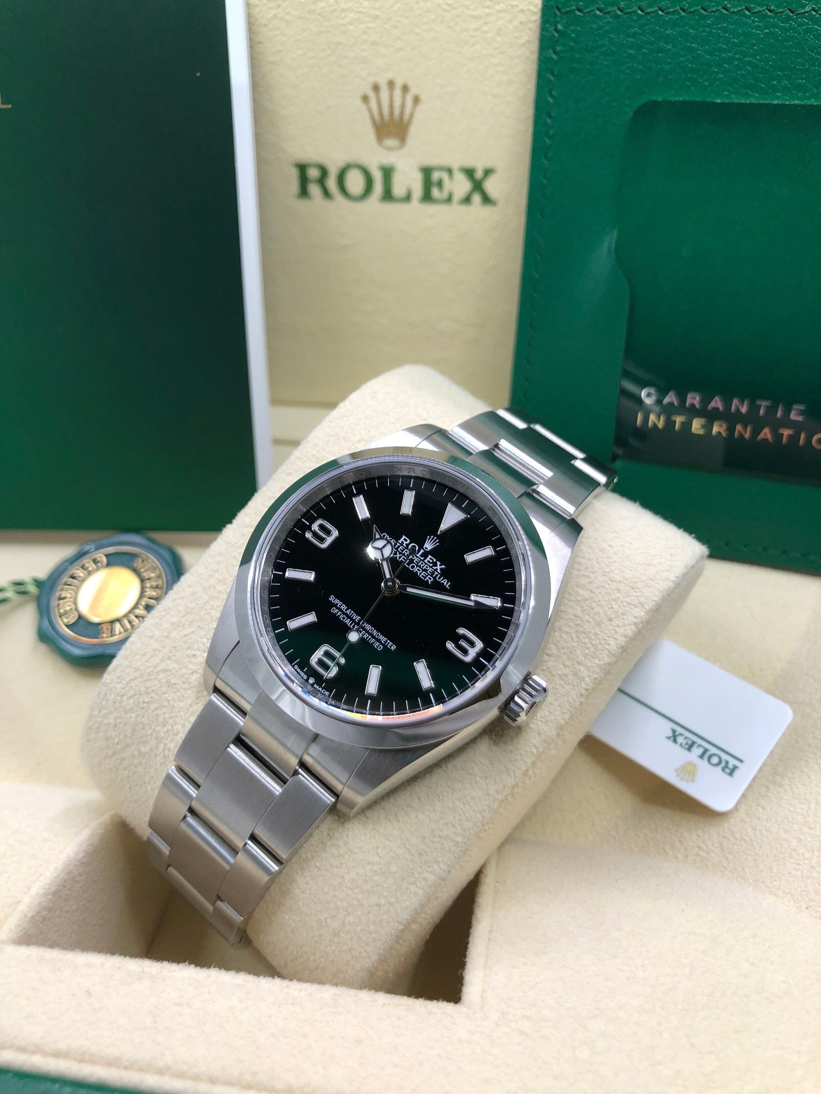 Box & Papers: Original Rolex box, papers and hangtags