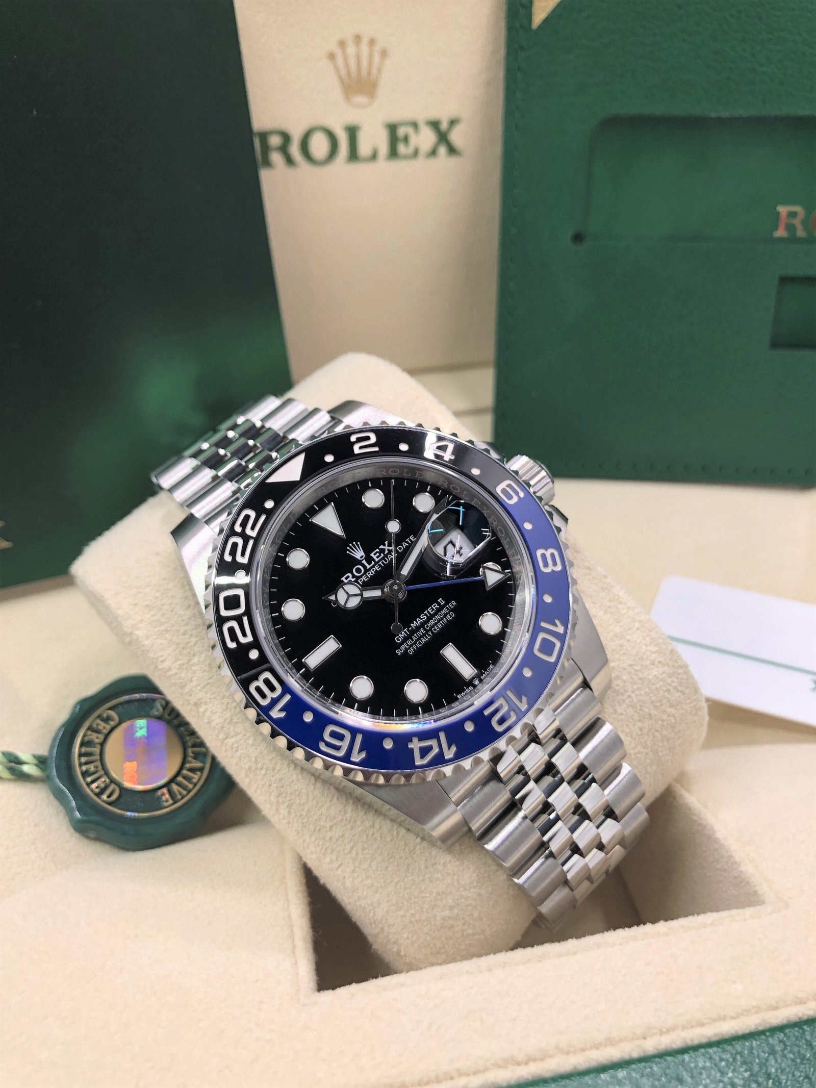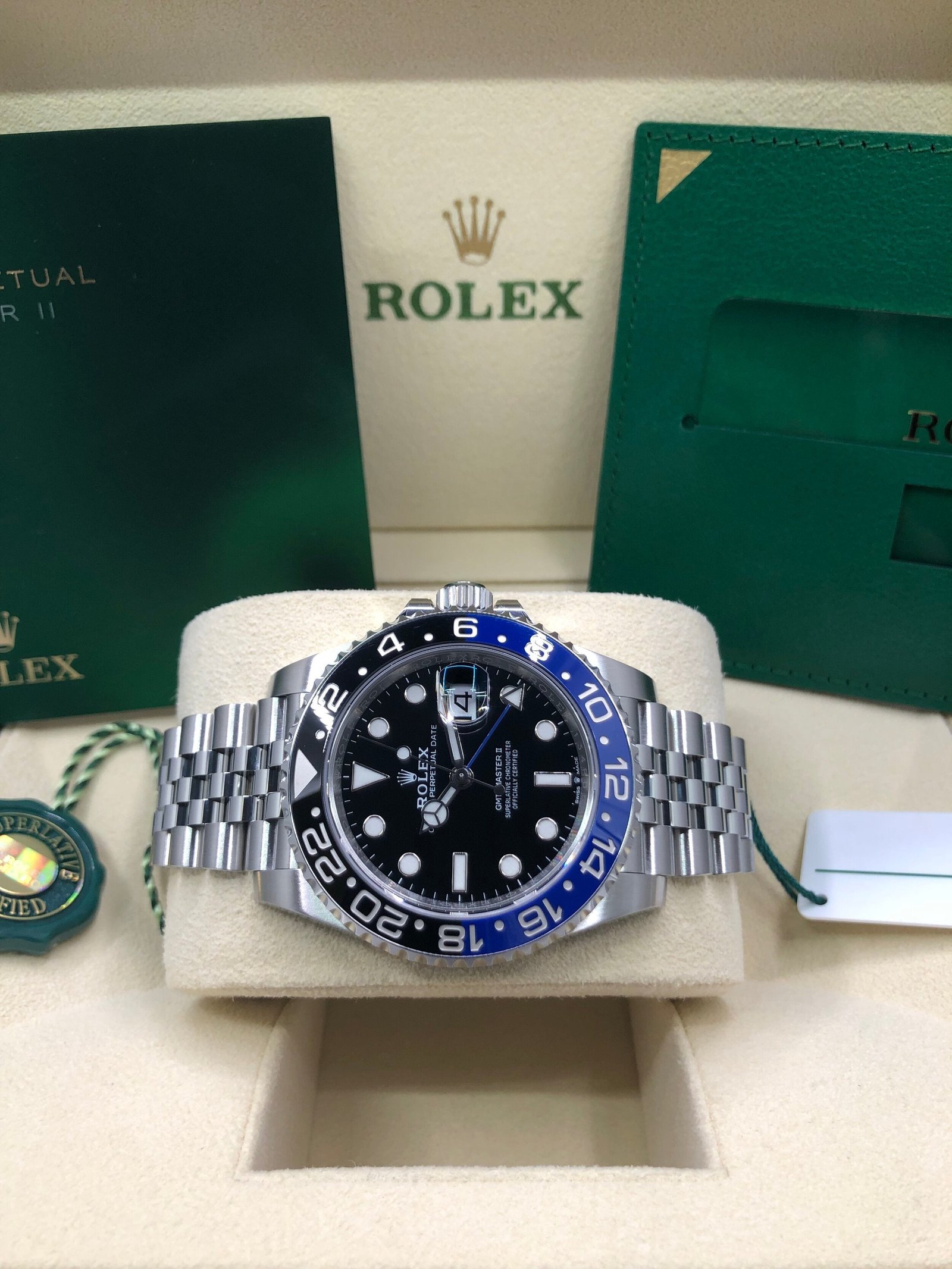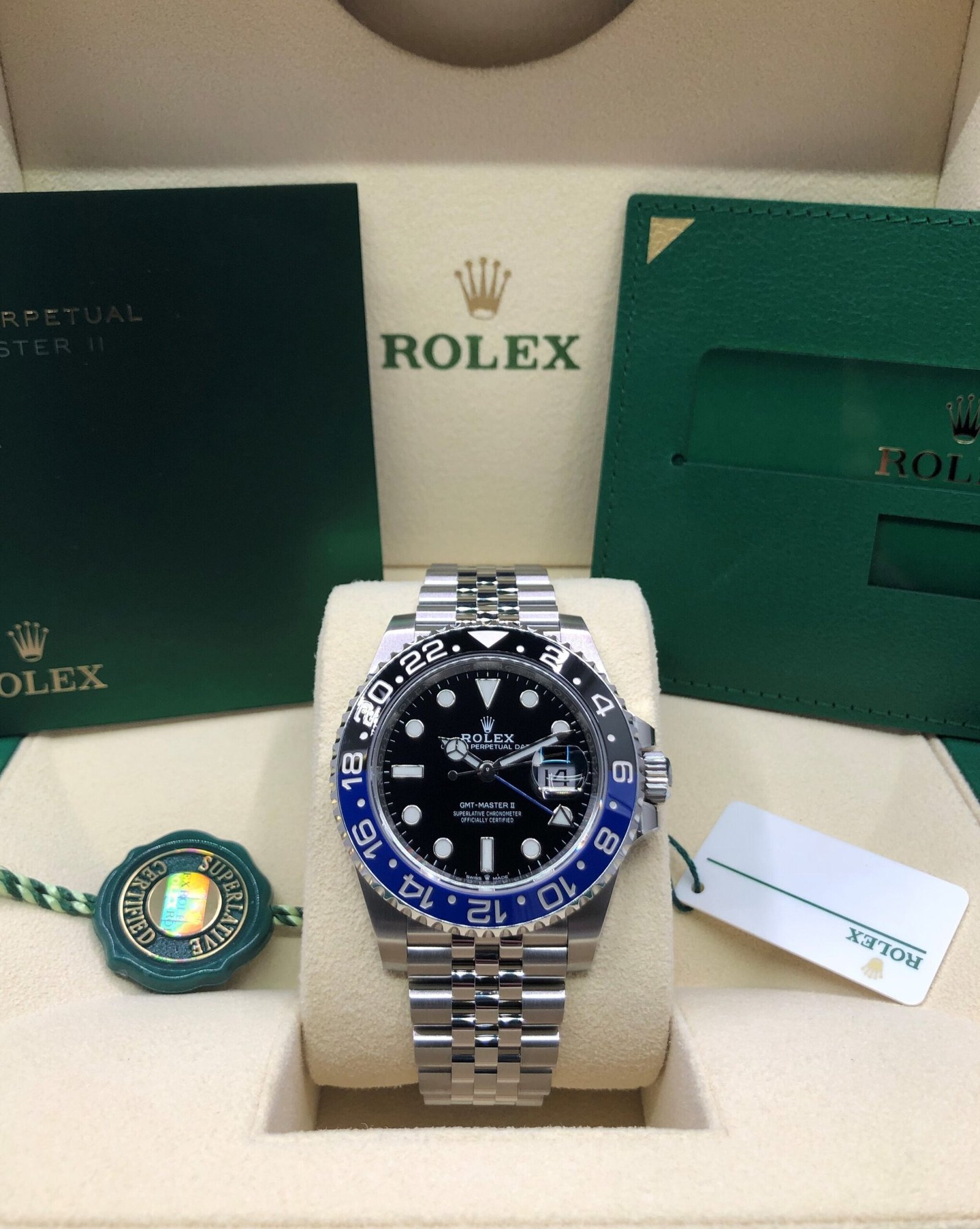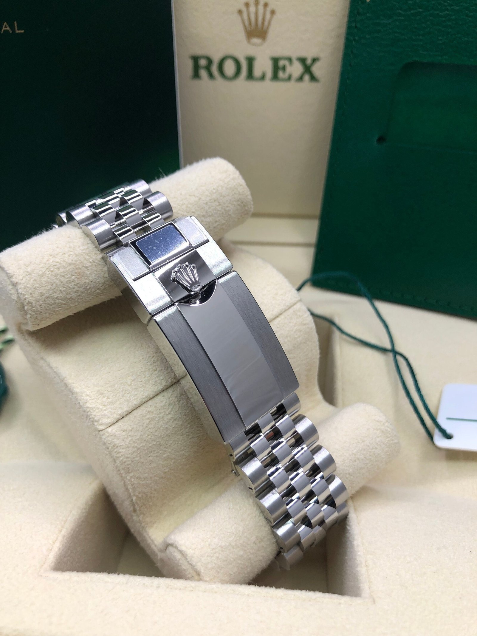 Box & Papers: Original Rolex box, papers, and hangtags