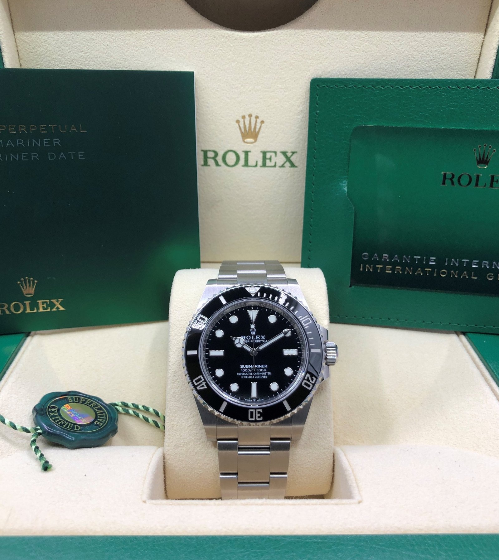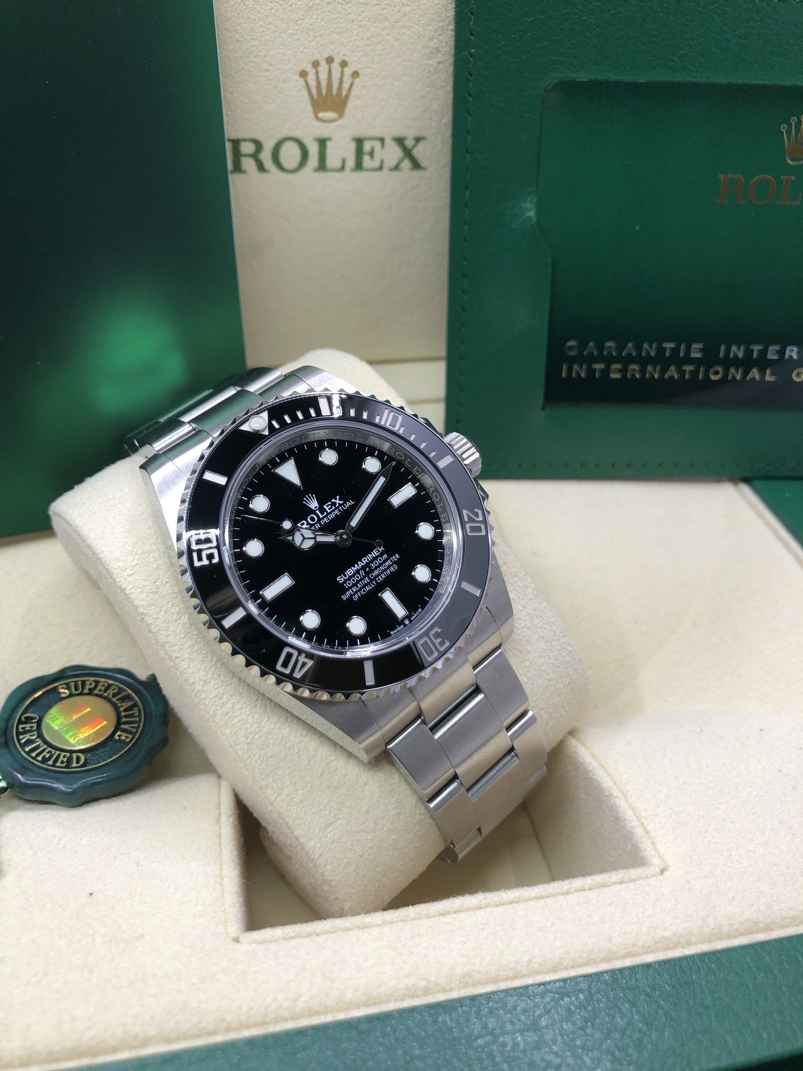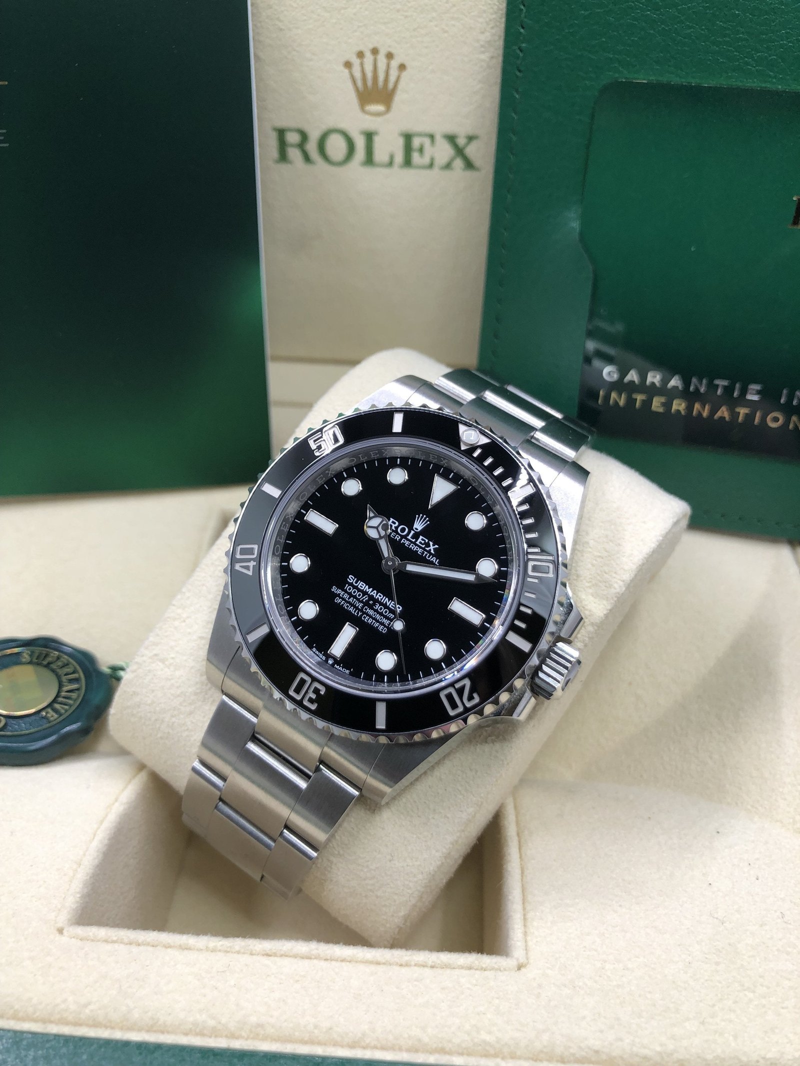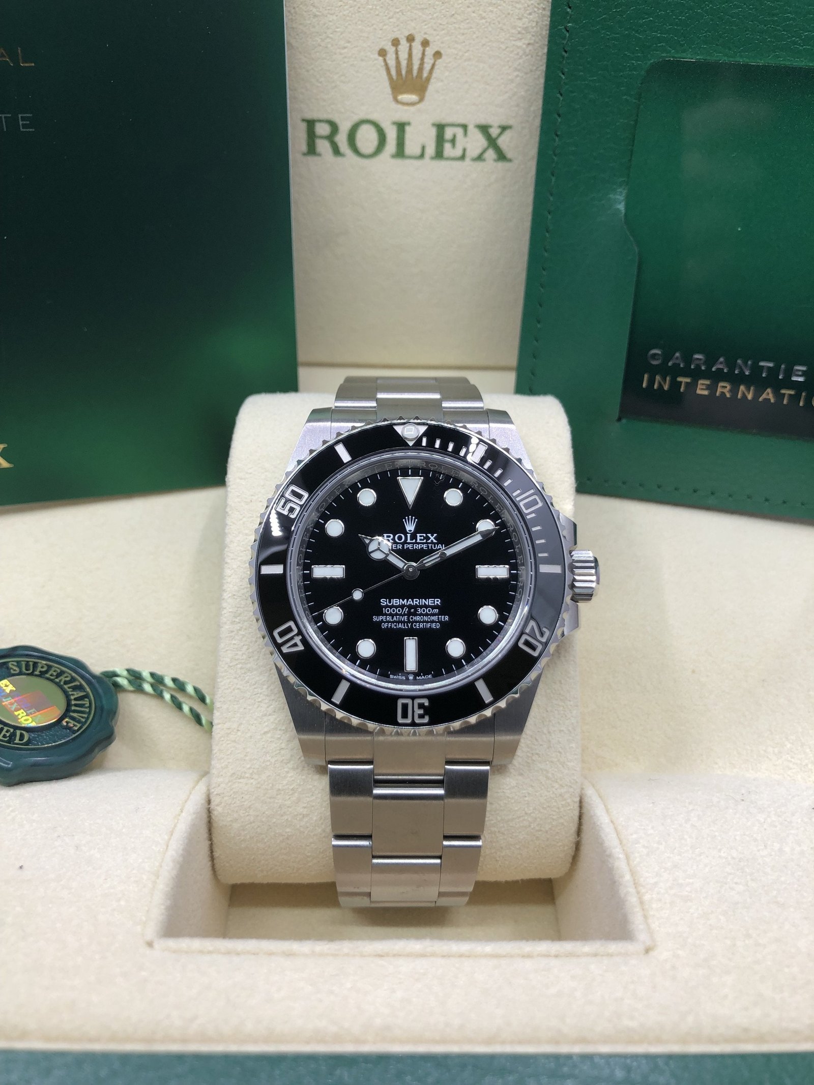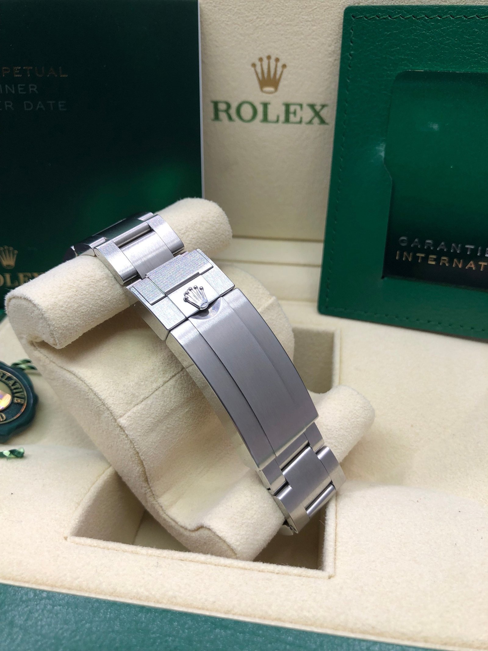 Box & Papers: Original Rolex box, papers, and hangtags