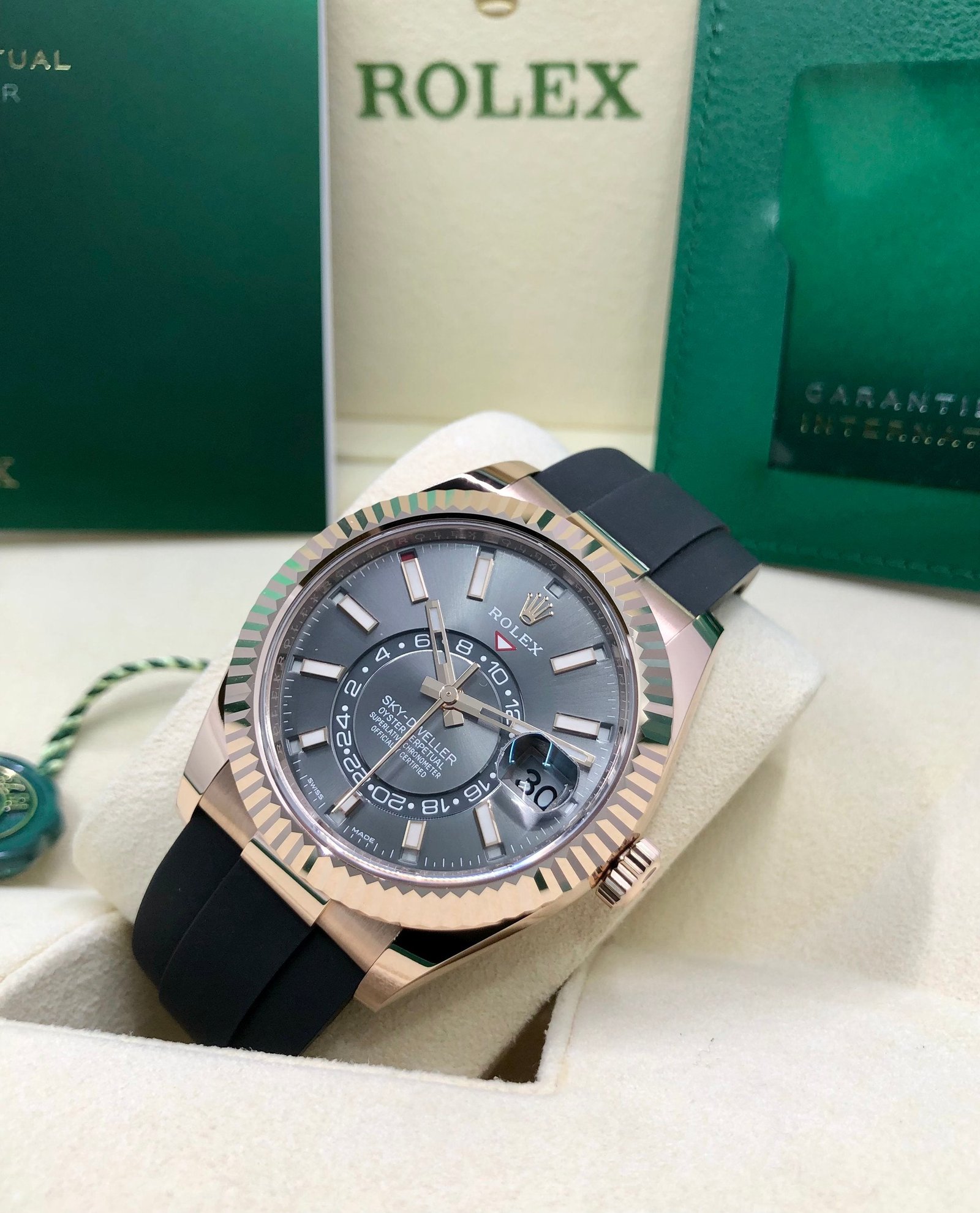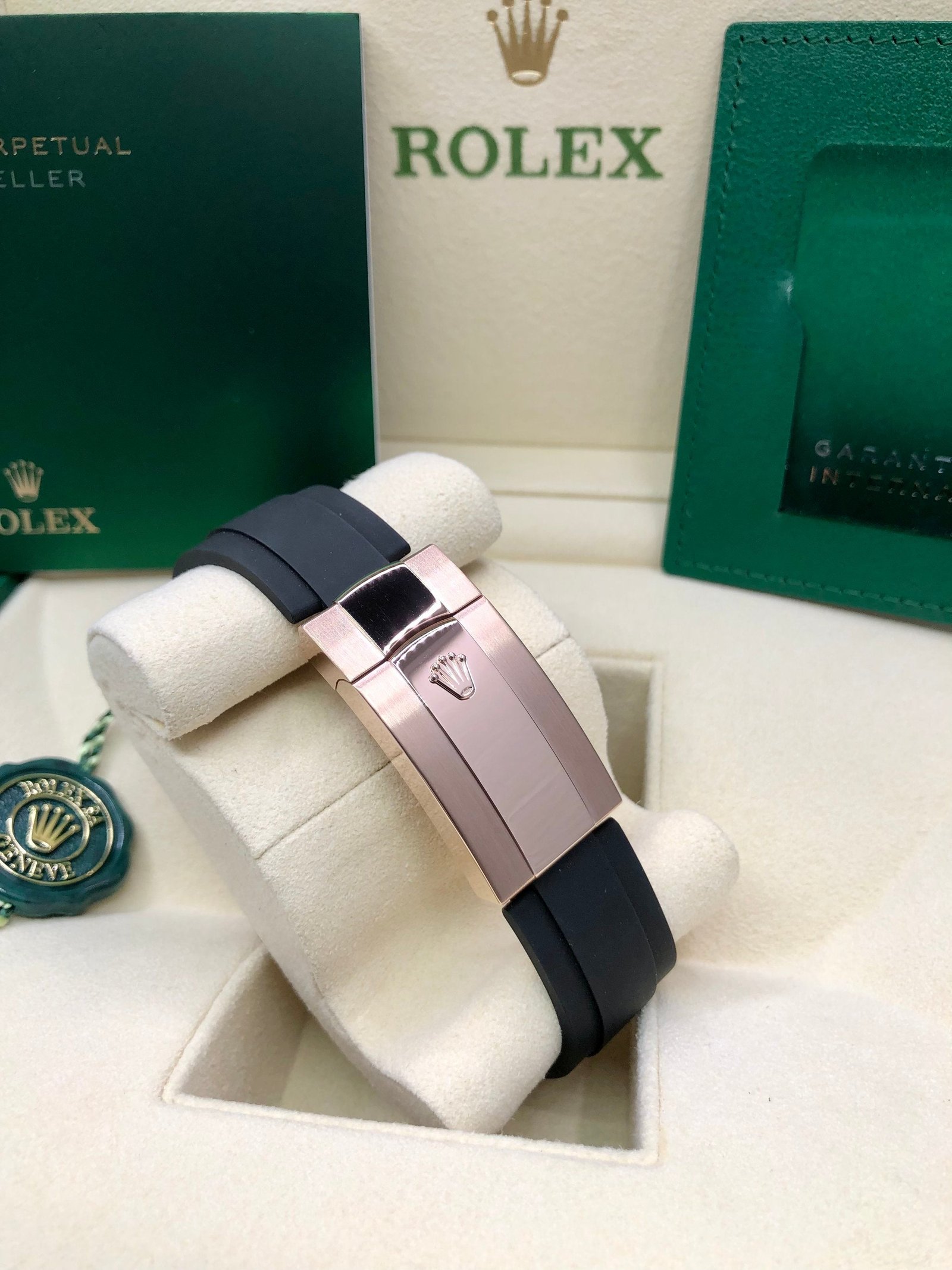 Case: 18ct Everose gold case 42mm in diameter. Rolex logo on crown
