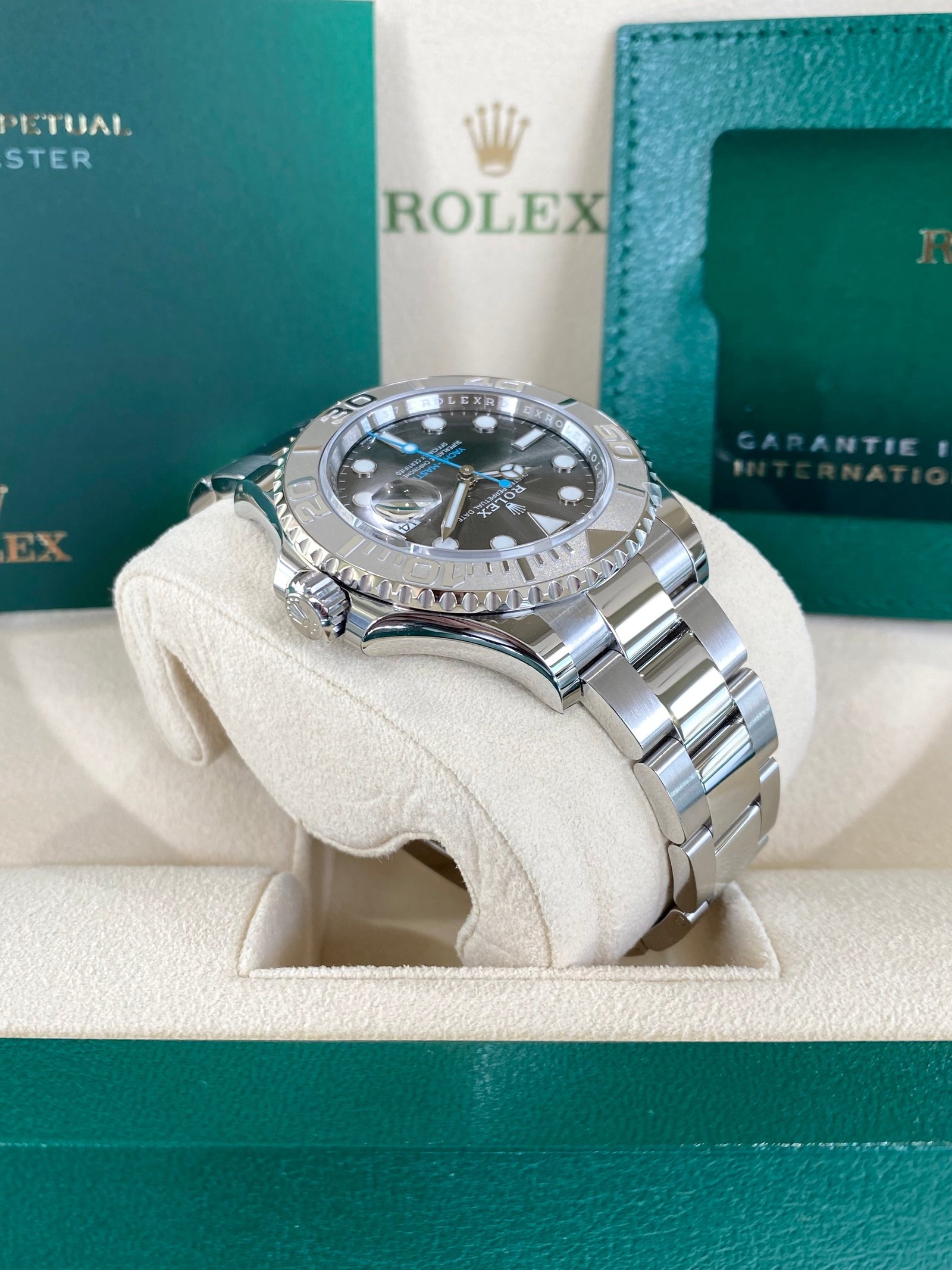 Dial: Slate dial with luminous inlay hands and hour markers. Date calendar at 3 o’clock aperture.