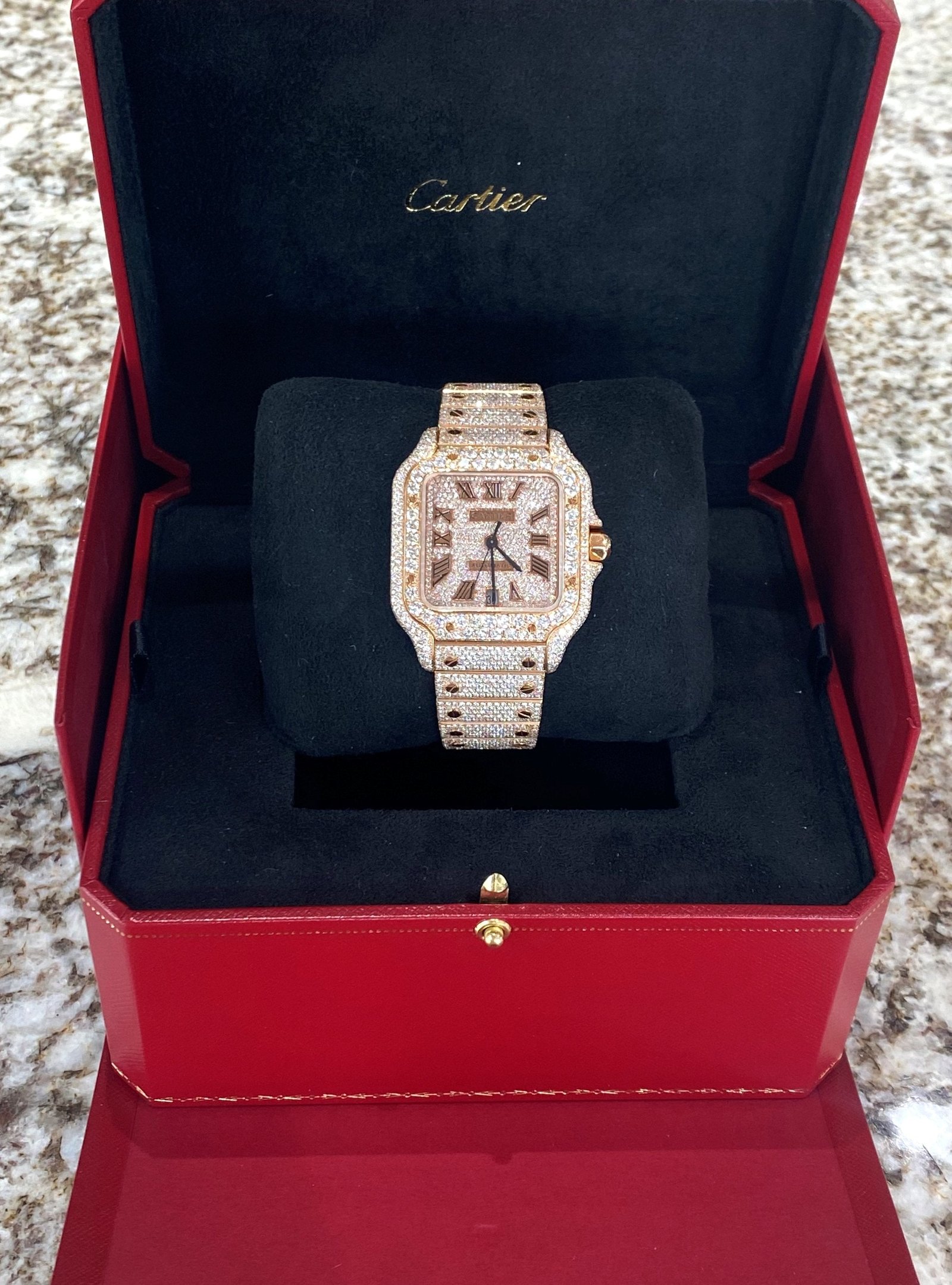 Condition: Unworn; All original Cartier parts and movements set with stones after purchased from Cartier boutique