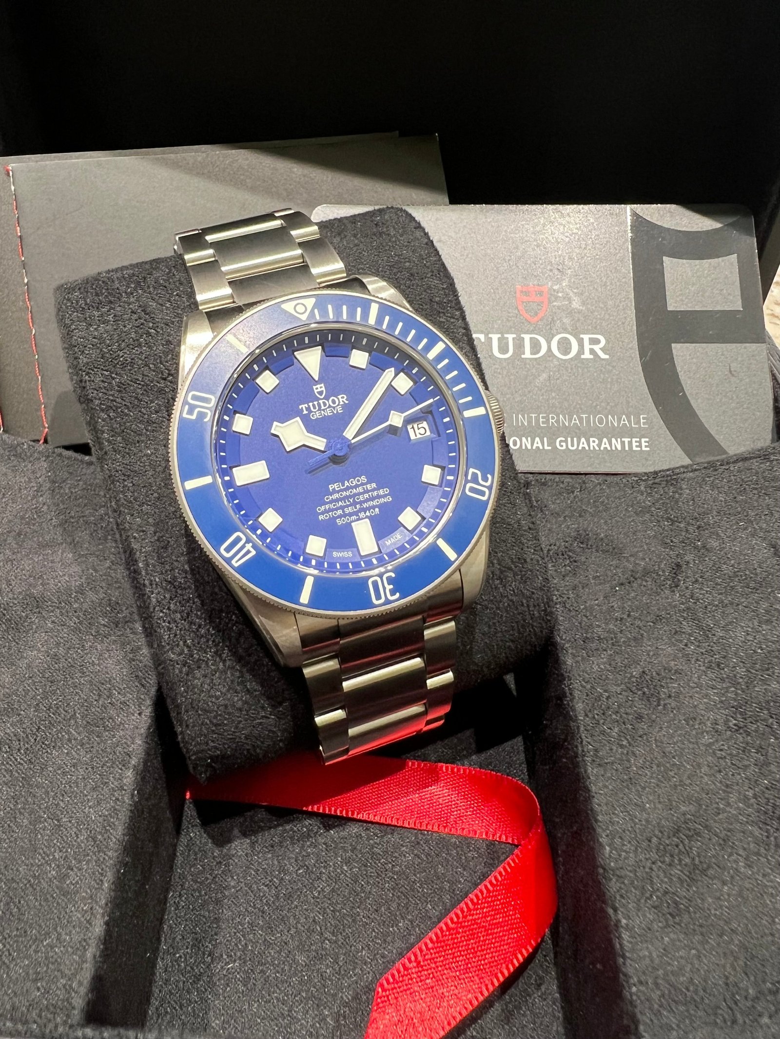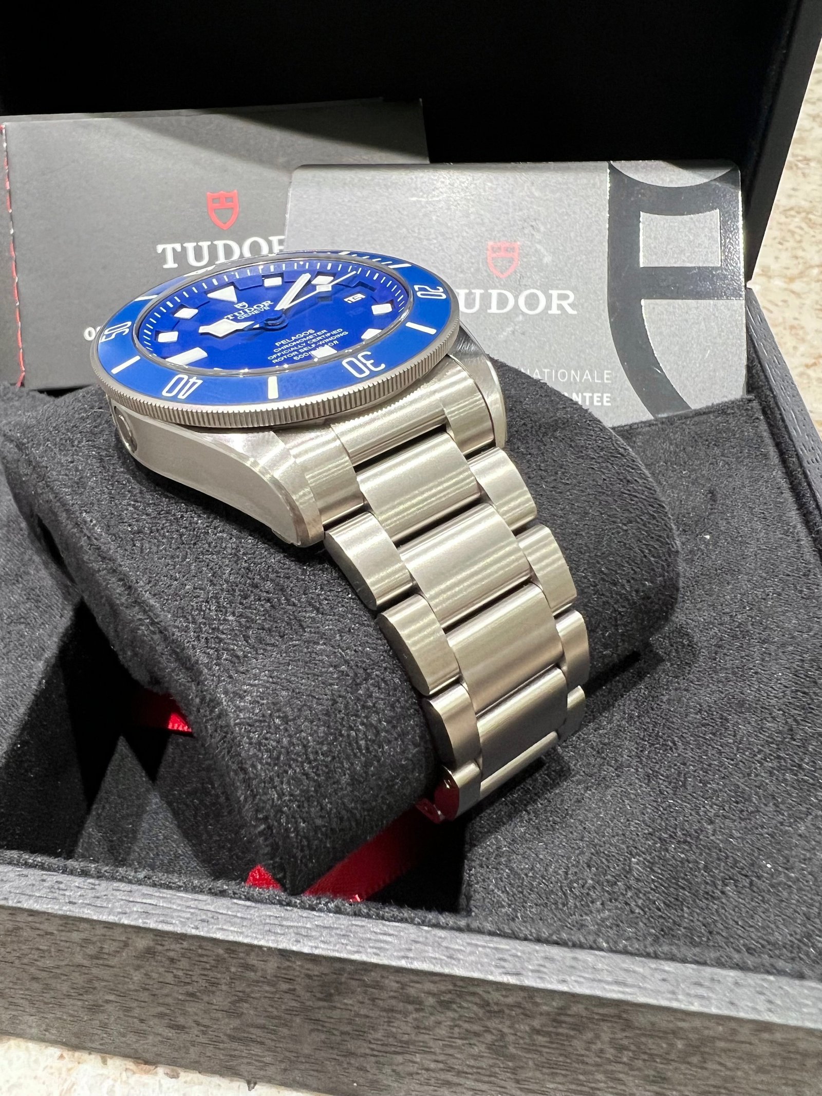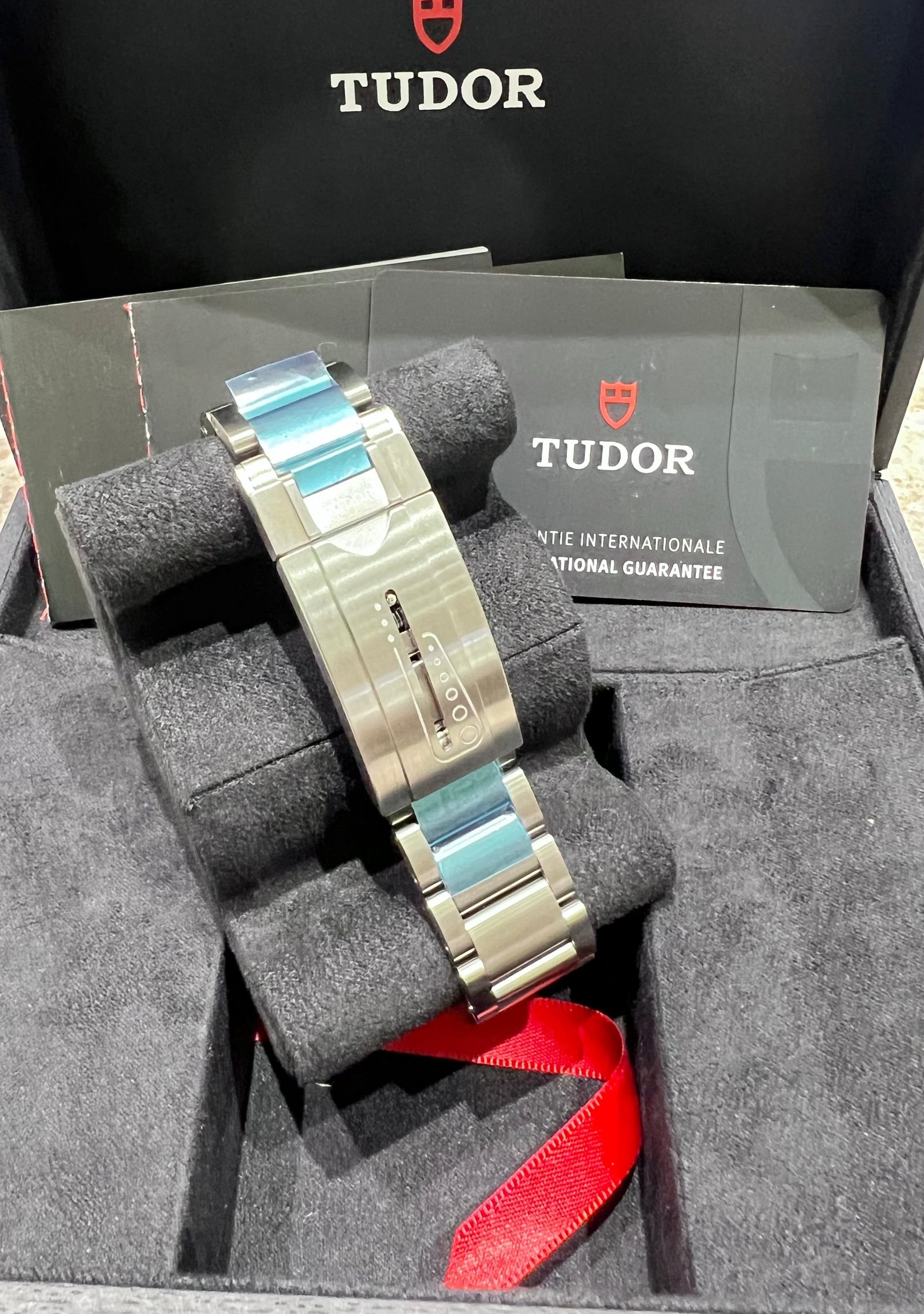 Bracelet: Titanium bracelet with folding clasp and safety catch in steel with bracelet extension system developed and patented by TUDOR, complimentary blue rubber strap with buckle and extra extension piece supplied with watch