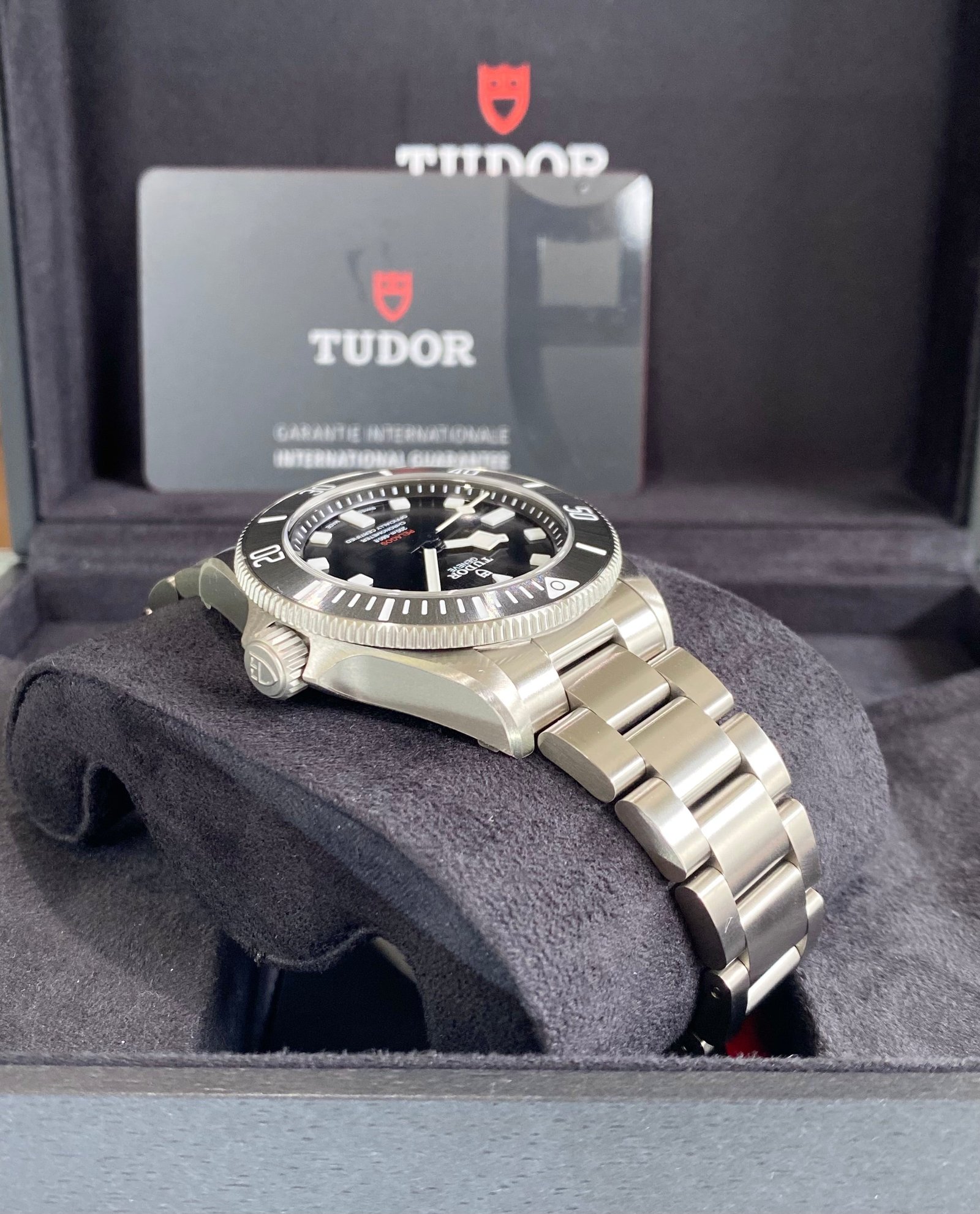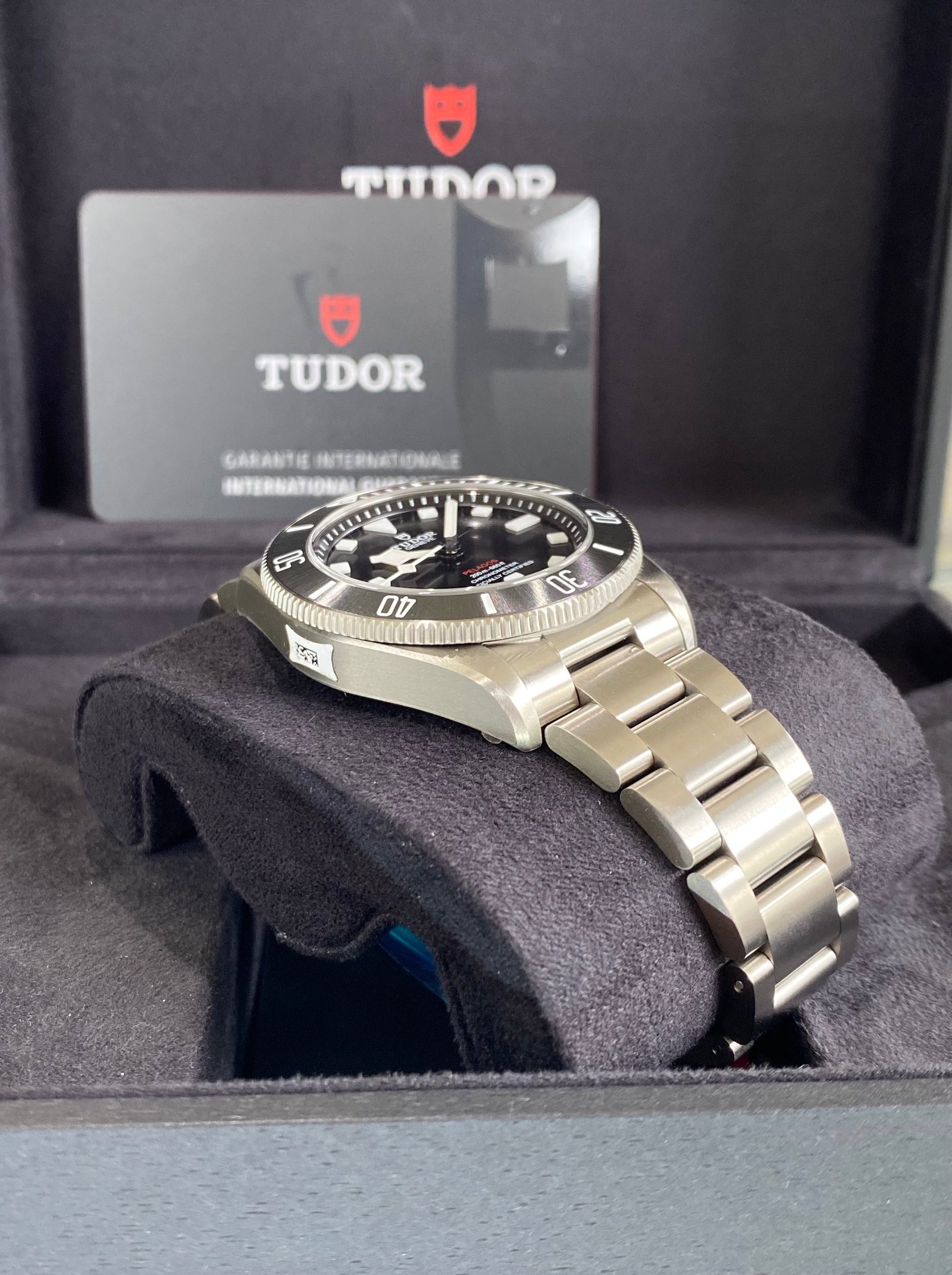 Bracelet: Titanium bracelet with TUDOR “T-fit” folding clasp, safety catch and diver’s extension