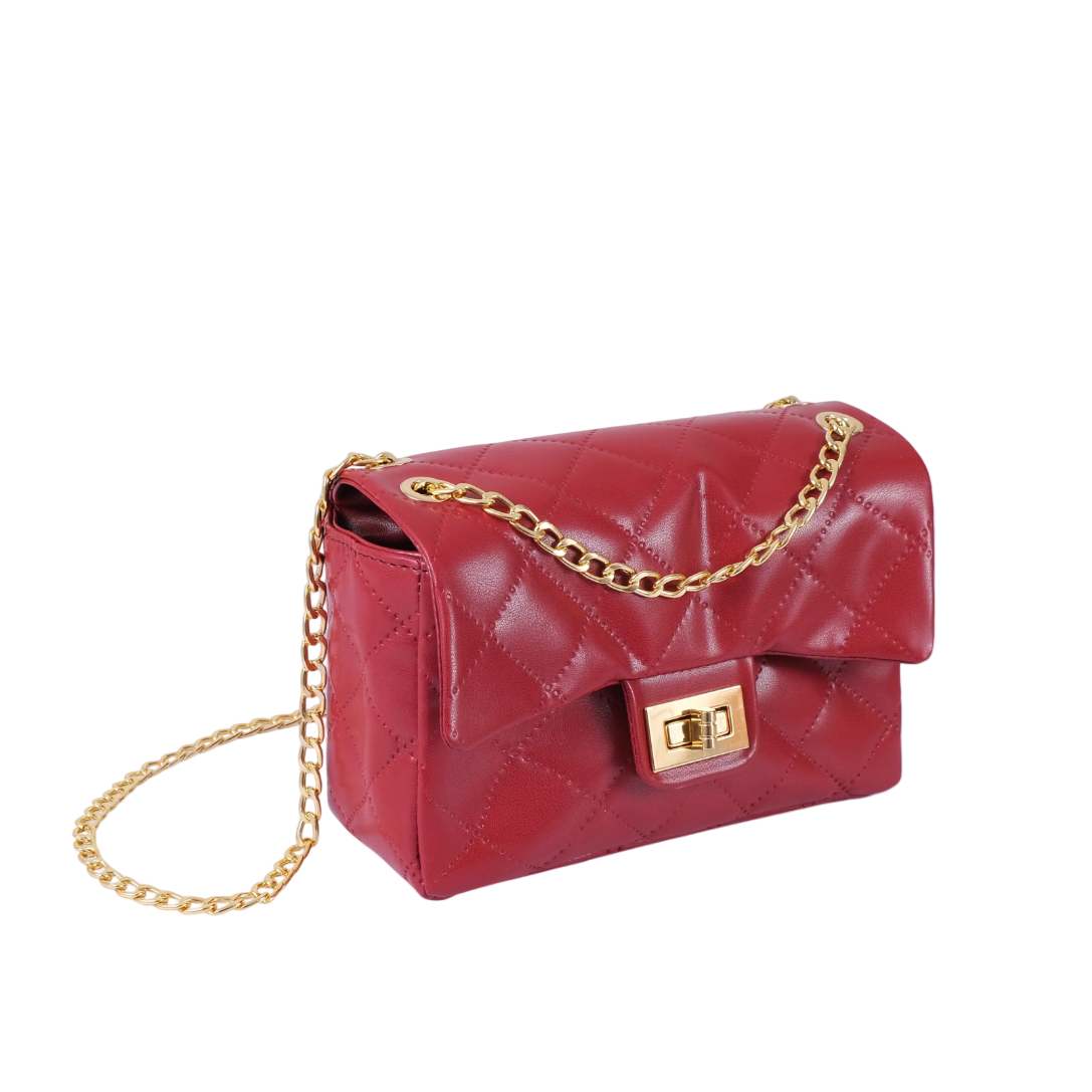 This Women Maroon Quilted Chain Shoulder Bag is crafted from premium maroon faux leather, making it a bold yet versatile accessory for any occasion. Its soft quilted finish paired with a gold-tone chain strap brings a chic, fashionable edge to both casual and evening looks.